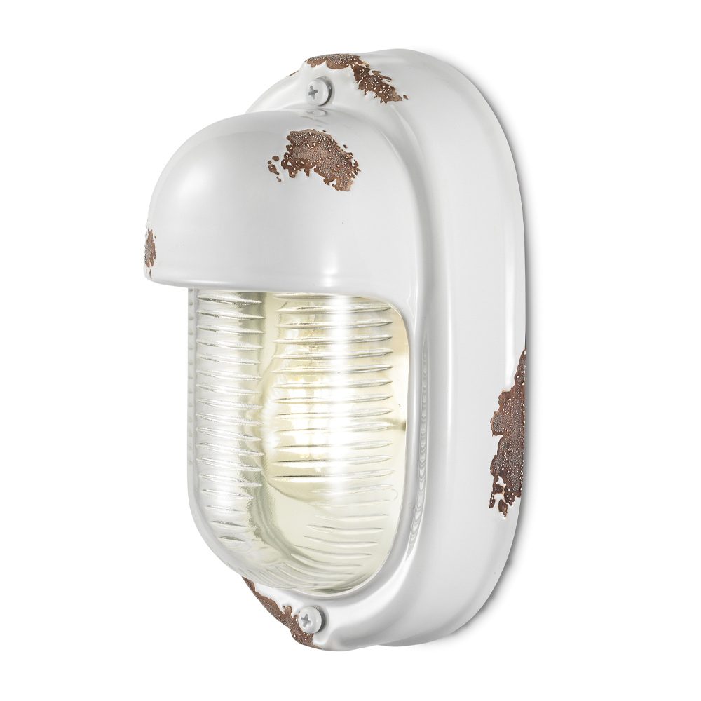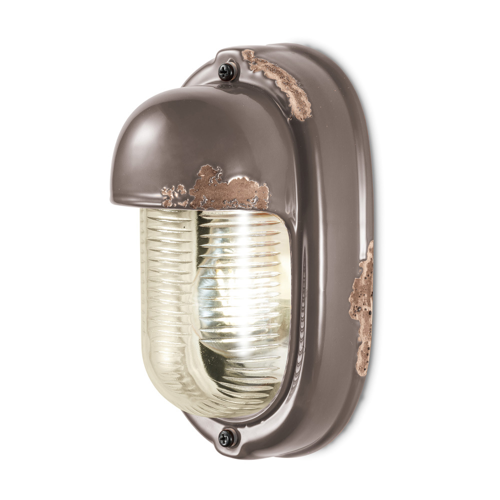Vertikal industriell stil handgjord vägglampa i keramik och metall tillverkad i Italien av Ferroluce.