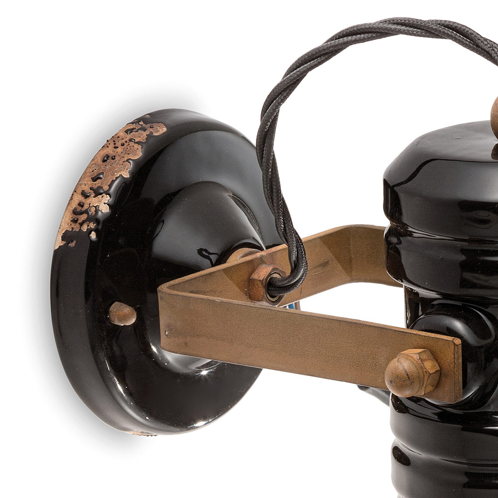 Handgjord vägglampa i industridesign i keramik och metall tillverkad i Italien av Ferroluce.