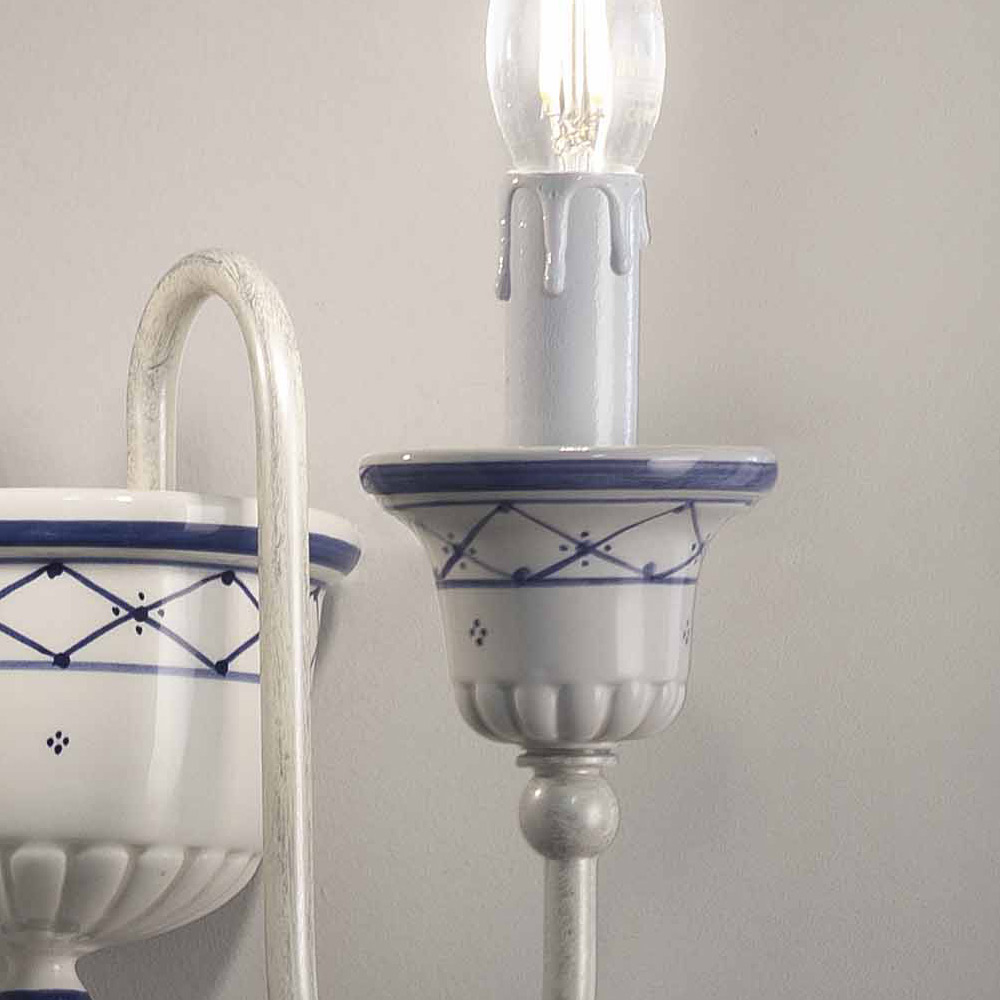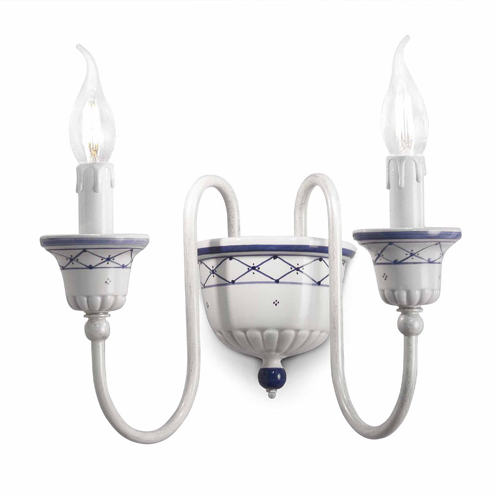 Denna 2-ljus vägglampa är helt handgjord i målad mässing och keramik med handmålad blomdekor, för att lyfta fram hantverkarnas hantverksskicklighet och manuella färdigheter.
