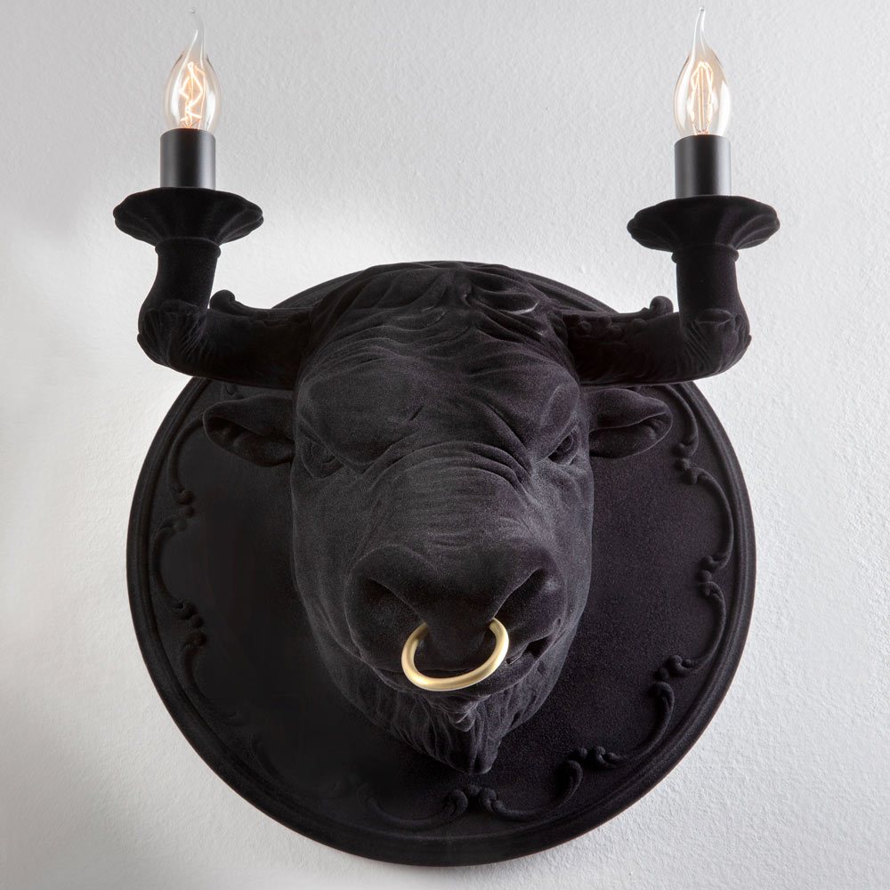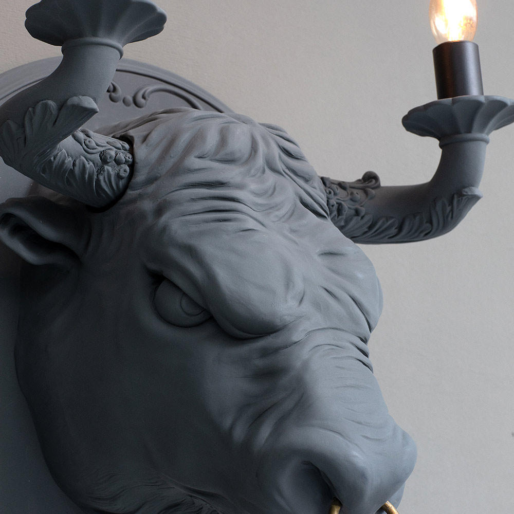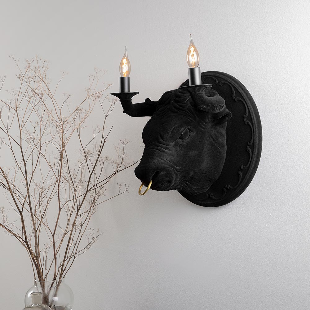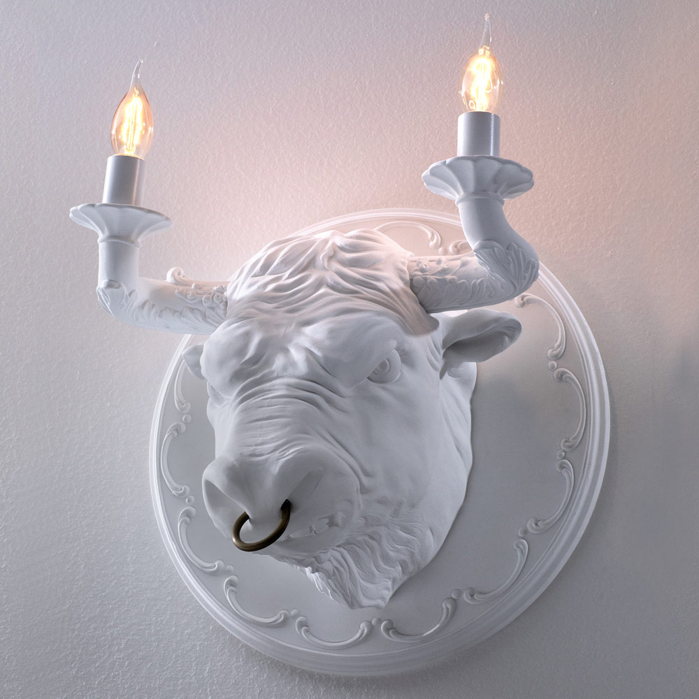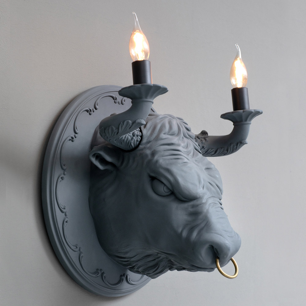 Denna originella och unika vägglampa har en modern och söt design i form av ett tjurhuvud komplett med en nosring och horn för ljus, för en lätt och sofistikerad anda.