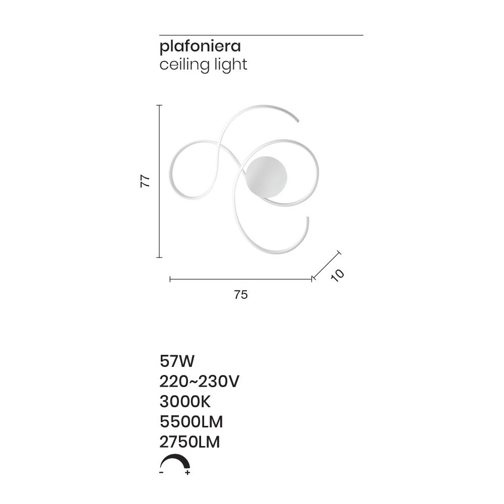 stark modern personlighet och, tack vare den dimbara drivenheten placerad inuti centralplattan, låter dig justera ljusflödet för ett