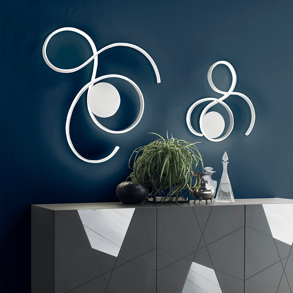 LED-källa. Slingrande linjer och ursprungliga former ger liv åt denna moderna möbel som förtrollar synen och lyser upp varje hemrum med en