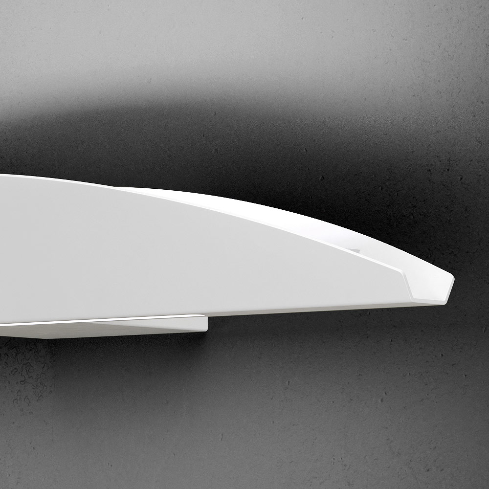 Denna lampa är symbolen för den perfekta syntesen mellan modern design och professionell funktionalitet . Dess avsmalnande, tunna och aerodynamiska form påminner om en vingprofil, vilket ger rummet en känsla av lätthet och rörelse .