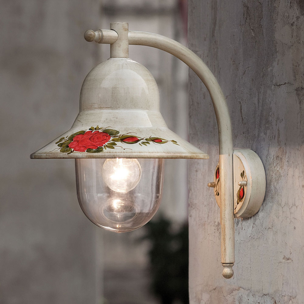 Denna trädgårdsvägglampa är helt gjord av skuggad vit aluminium och dekorerad med handmålade blommor för en klassisk och harmonisk stil mellan form och färger.