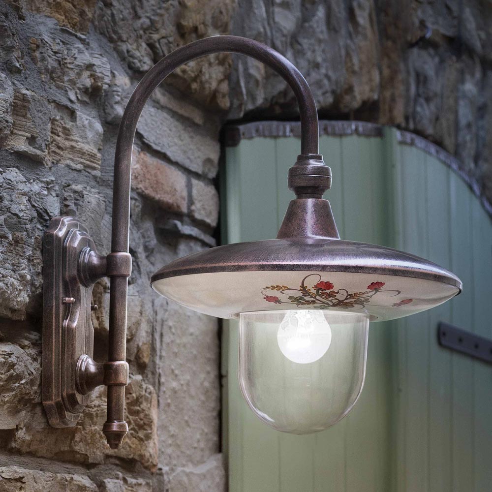 Denna utomhusvägglampa är helt gjord av svart aluminium med kopparskuggning och dekorerad med handmålade blommor för en klassisk och harmonisk stil mellan form och färg.