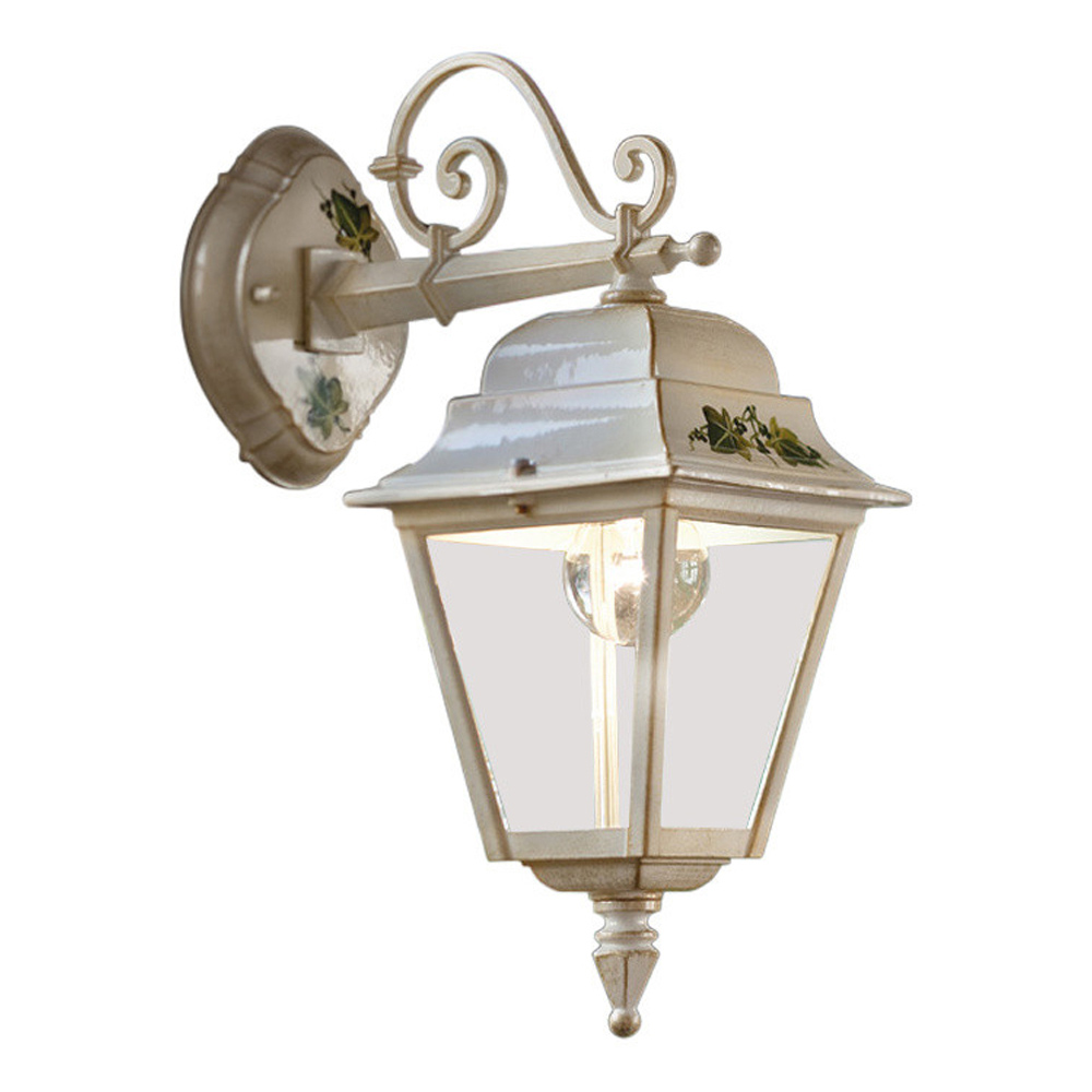 Denna utomhusvägglampa är helt tillverkad av vit aluminium dekorerad med handmålad murgröna för en klassisk och harmonisk stil mellan form och färger.