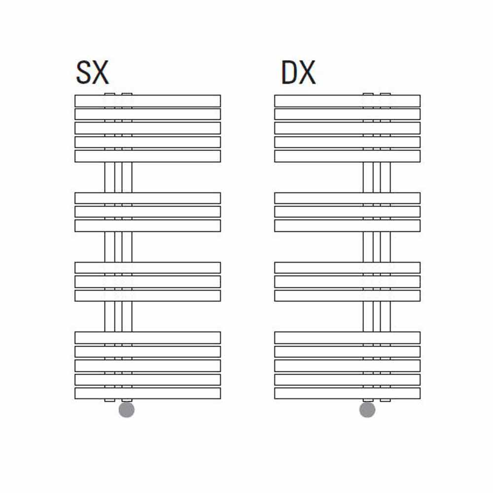 Höger eller vänster vertikal design elektrisk väggstrålare, i stål tillverkad i Italien.