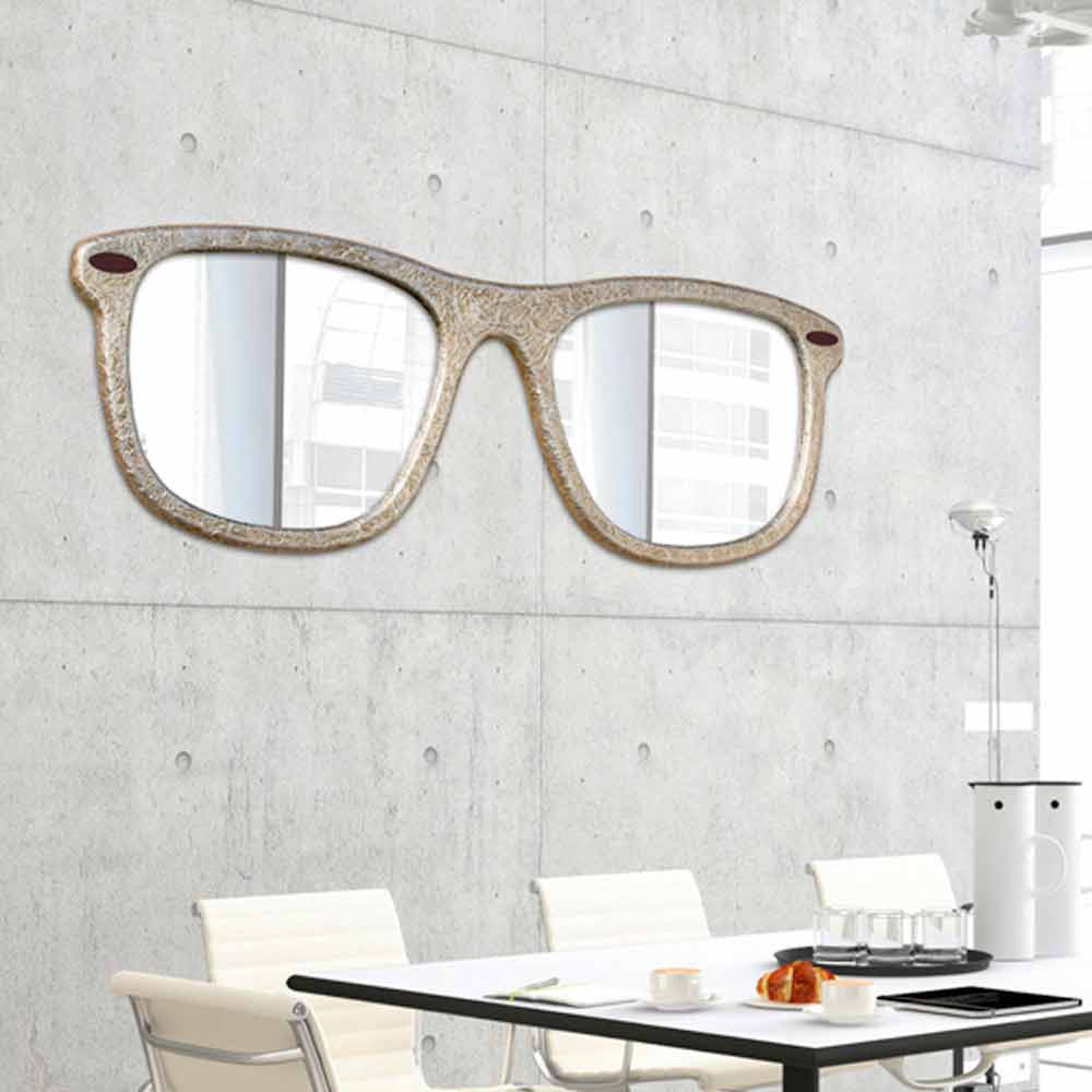 Väggmonterad möbelspegel i form av handdekorerade glasögon