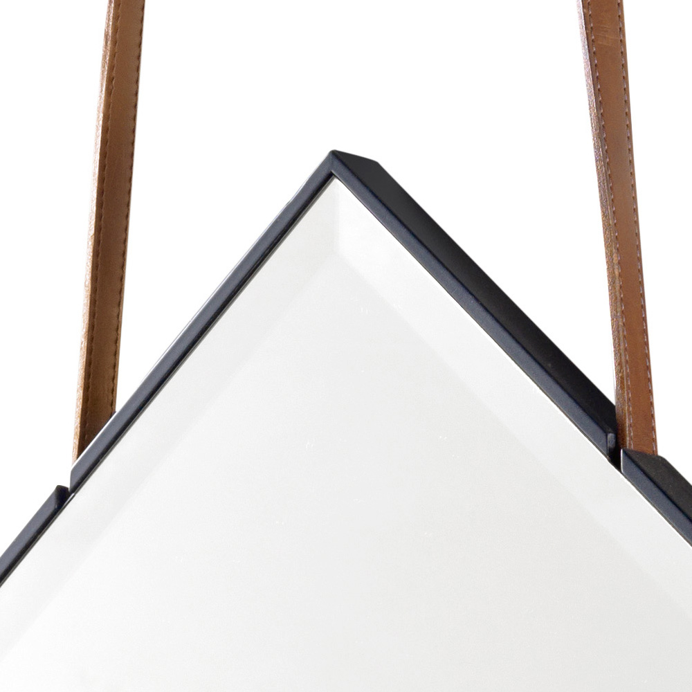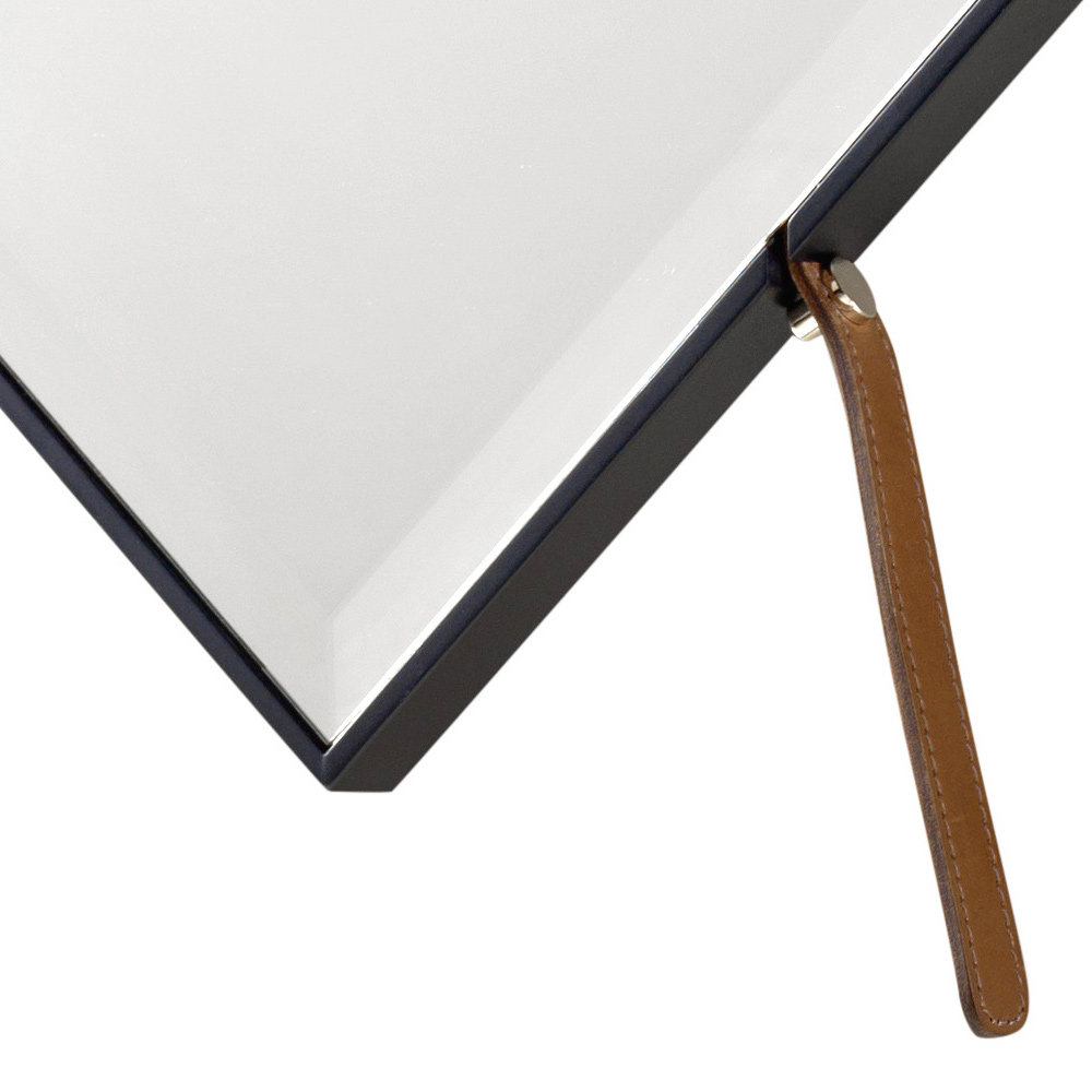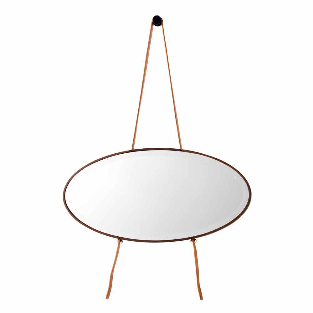 York-spegeln har en unik design och stil, tillverkad med en massiv träram i canaletto valnöt och ett läderbälte som stöder det som kan justeras i höjd.