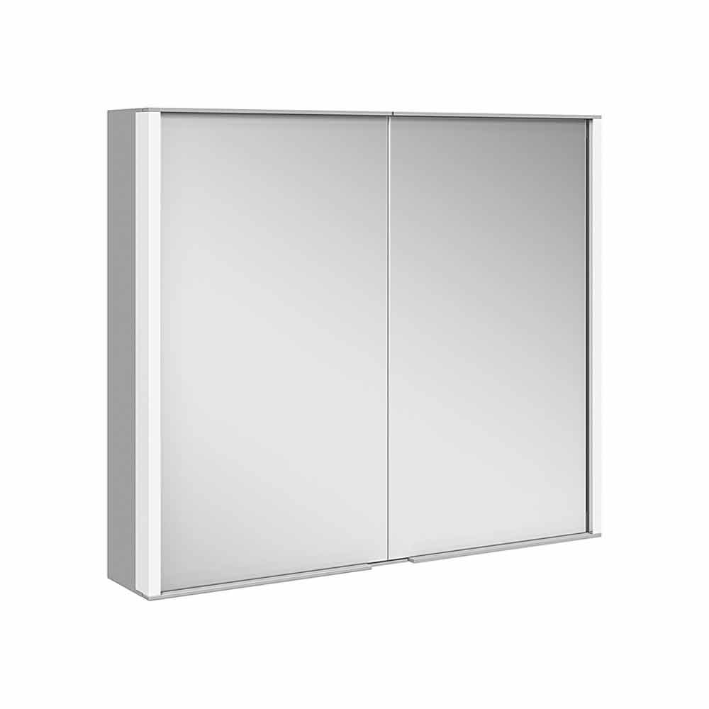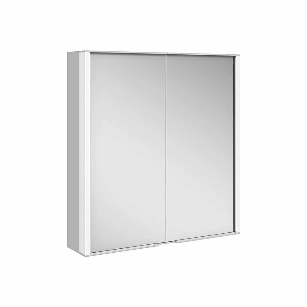 Modern väggbehållarspegel med 2 dörrar och LED-ljus.