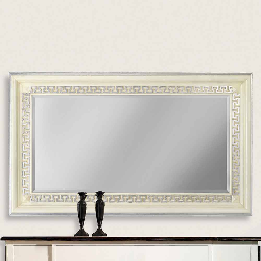 Denna spegel är ett elegant exempel som förkroppsligar en modern estetik med klassiska accenter . Designen har en tunn och raffinerad ram med det grekiska nyckelmotivet, en tidlös klassiker som symboliserar oändlighet och evighet, fint inlagd.