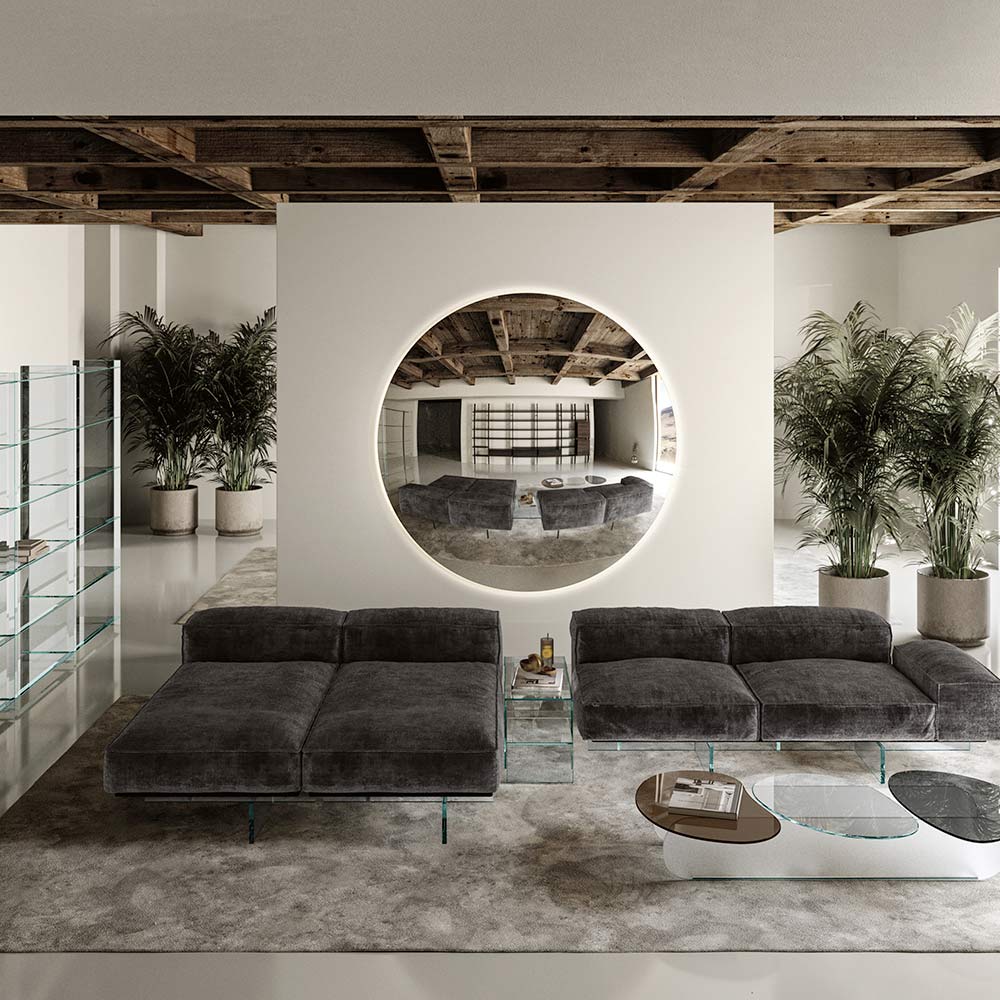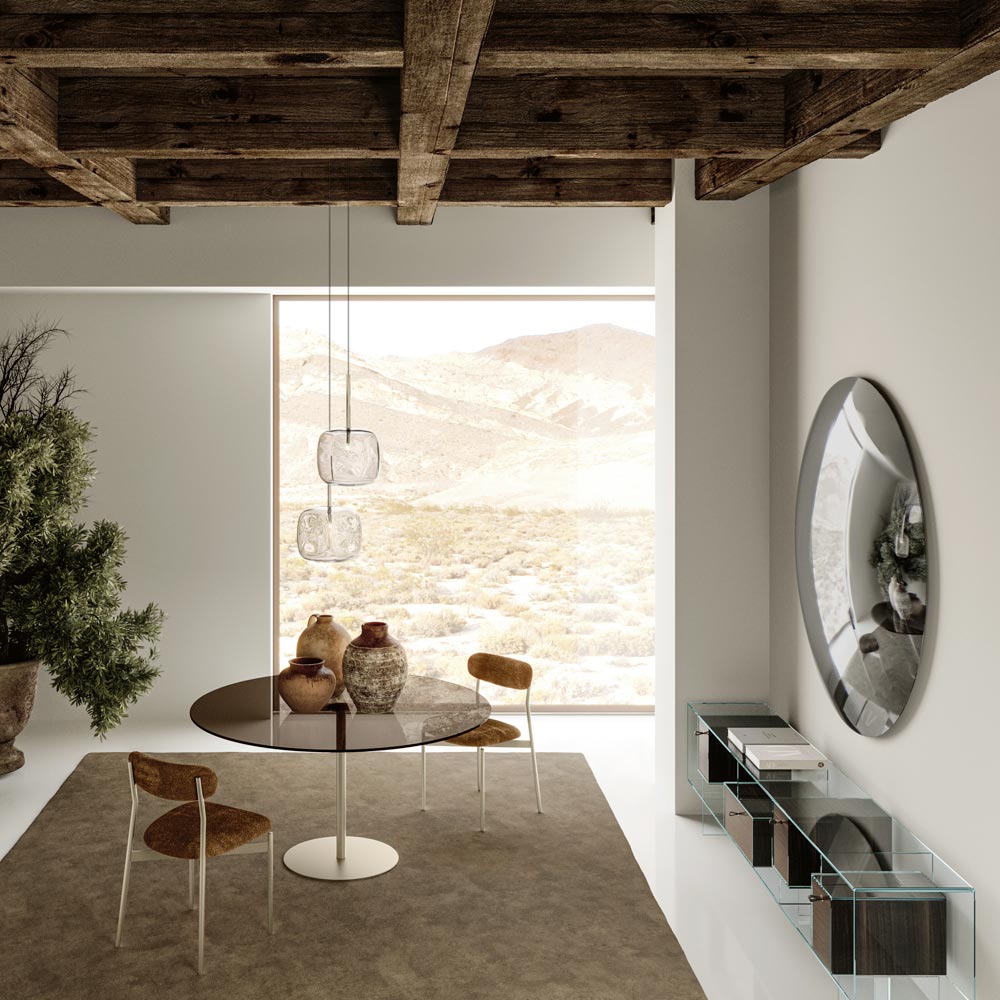 Denna cirkulära spegel är emblemet för nykterhet och minimalism , en inredningstillbehör som passar perfekt till alla moderna eller traditionella miljöer. Dess reflekterande, felfria yta förstärker inte bara ljus och rymd, utan fungerar också som en elegant kontaktpunkt i alla rum.