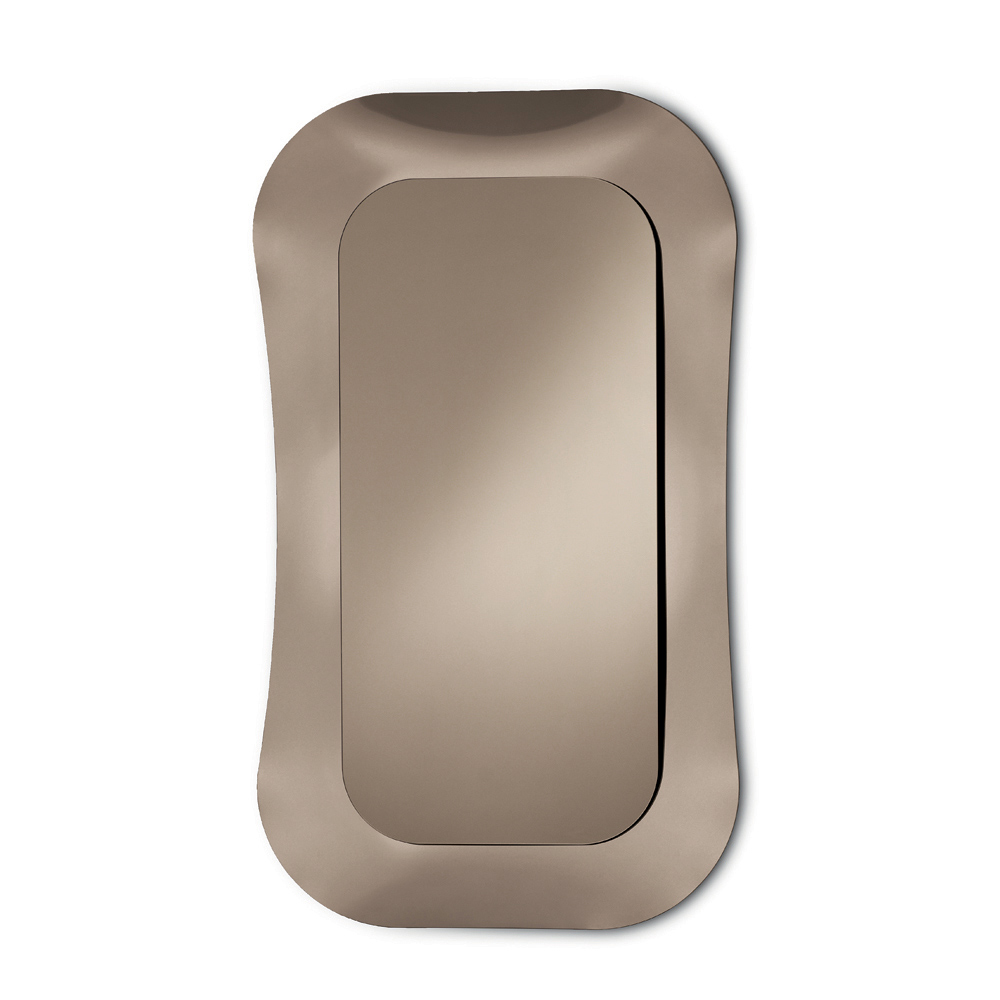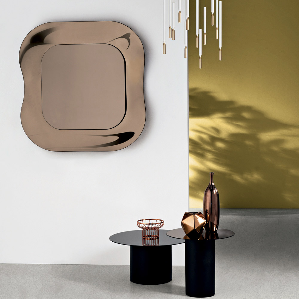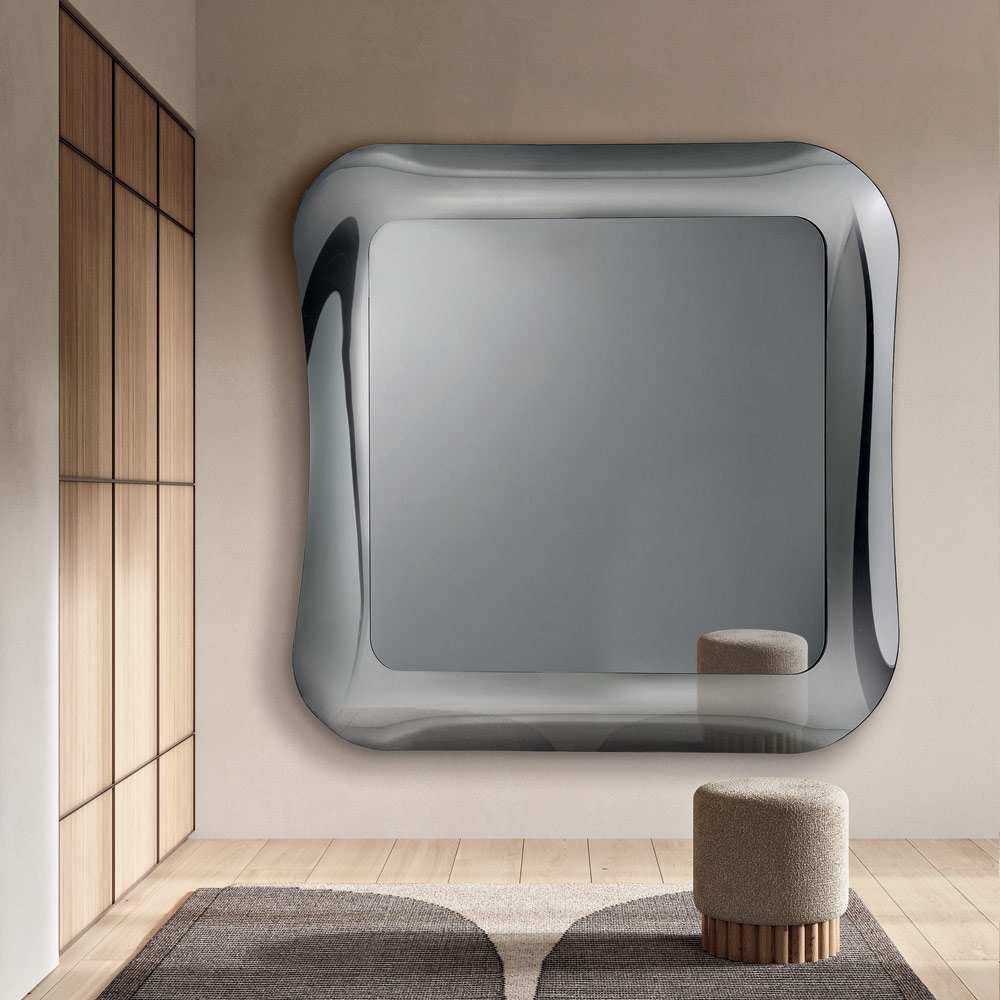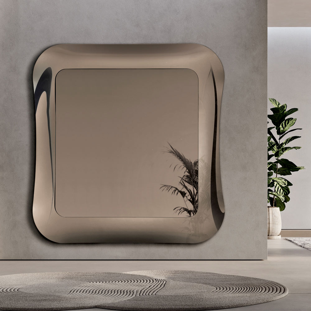 Den centrala spegeln , som vilar på ramen som ett lätt upphängt element, ger djup åt kompositionen och framhäver balansen mellan den reflekterande ytan och den dekorativa strukturen. Resultatet är en sofistikerad inredningsaccessoar, perfekt för moderna och raffinerade utrymmen.