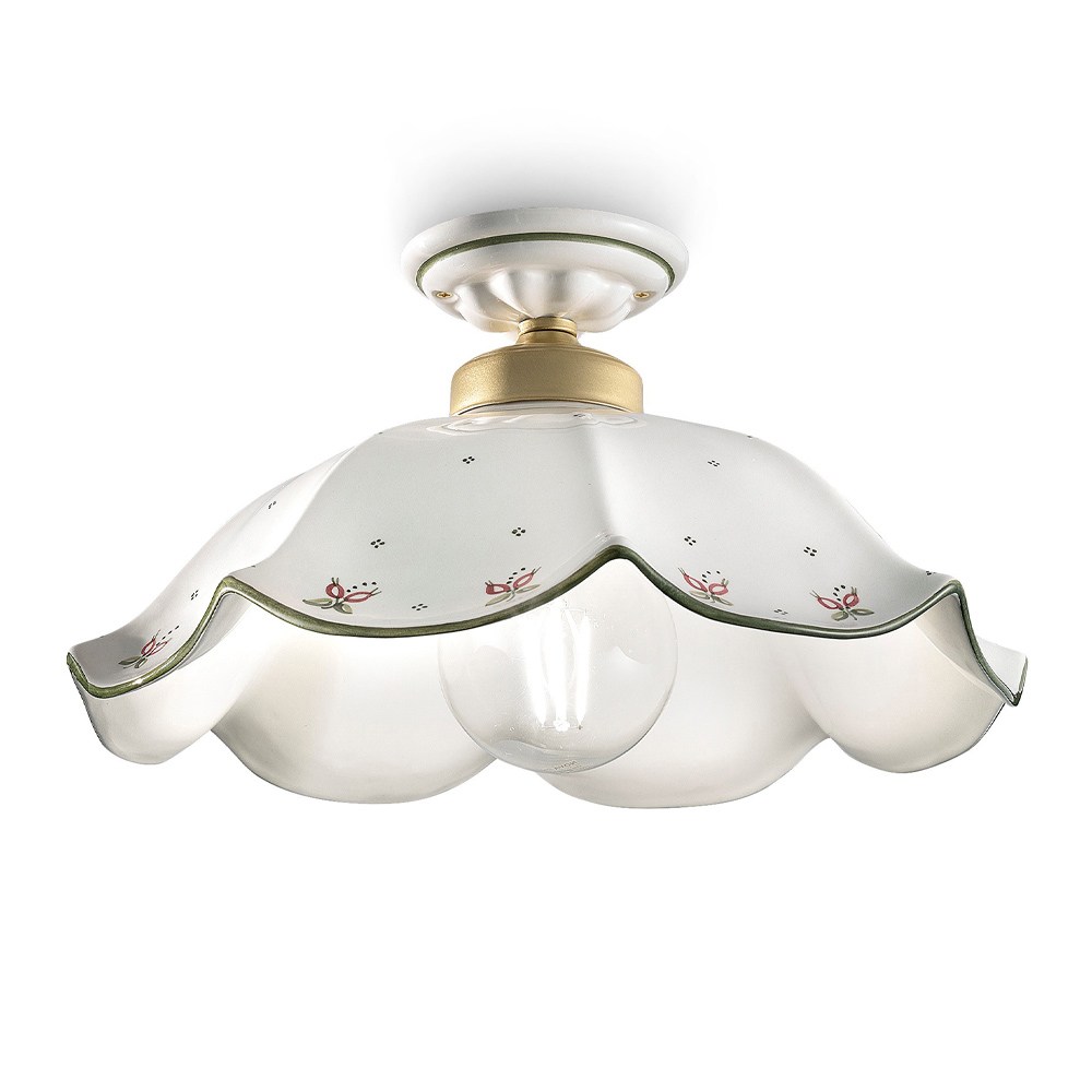 Vintage handmålad vågig keramisk taklampa tillverkad i Italien av Ferroluce.