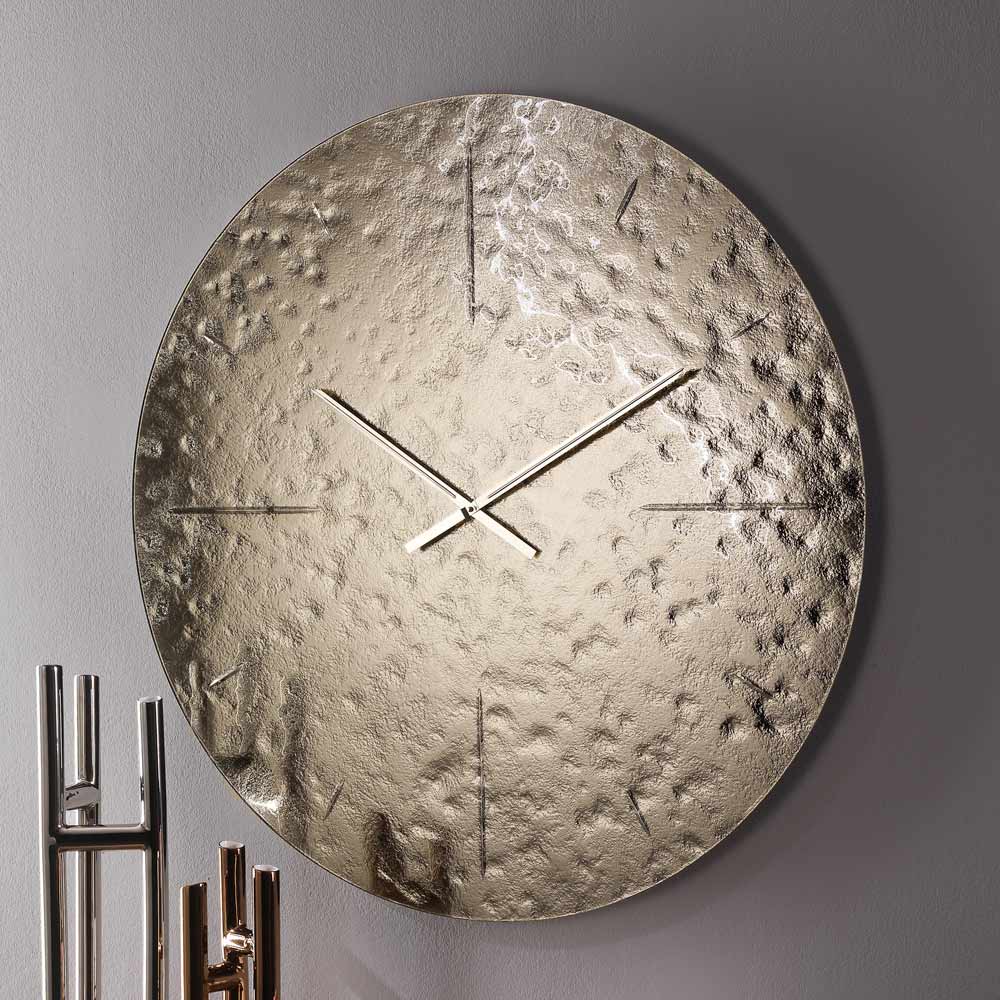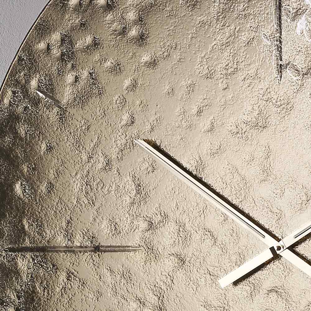 Den vågiga väggklockan i smält glas med bronsfinish är ett slående inredningstillbehör som kombinerar hantverk och modern design. Den texturerade ytan, som kännetecknas av ojämnheter och tredimensionella texturer, skapar raffinerade ljusspel som gör varje möbel unik.