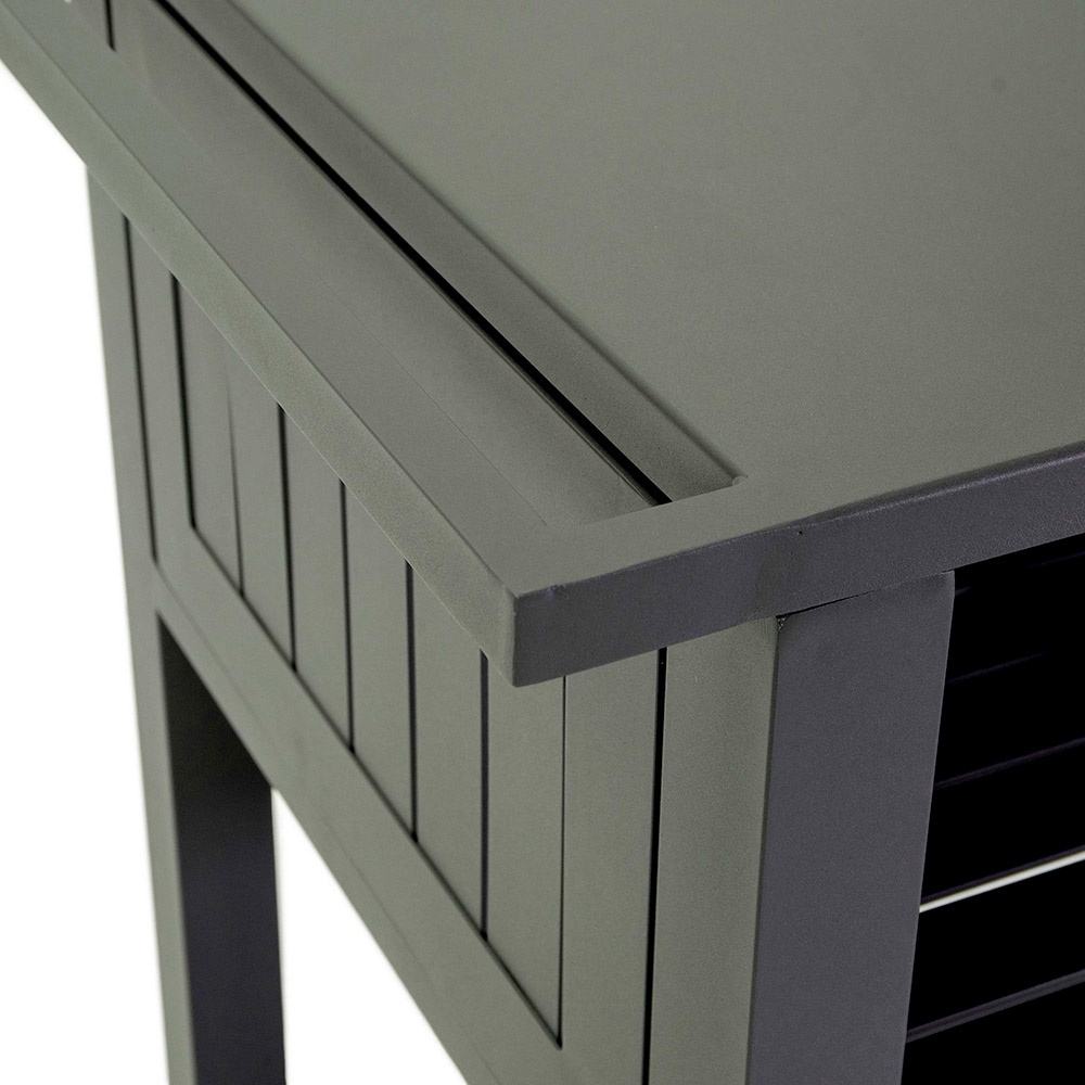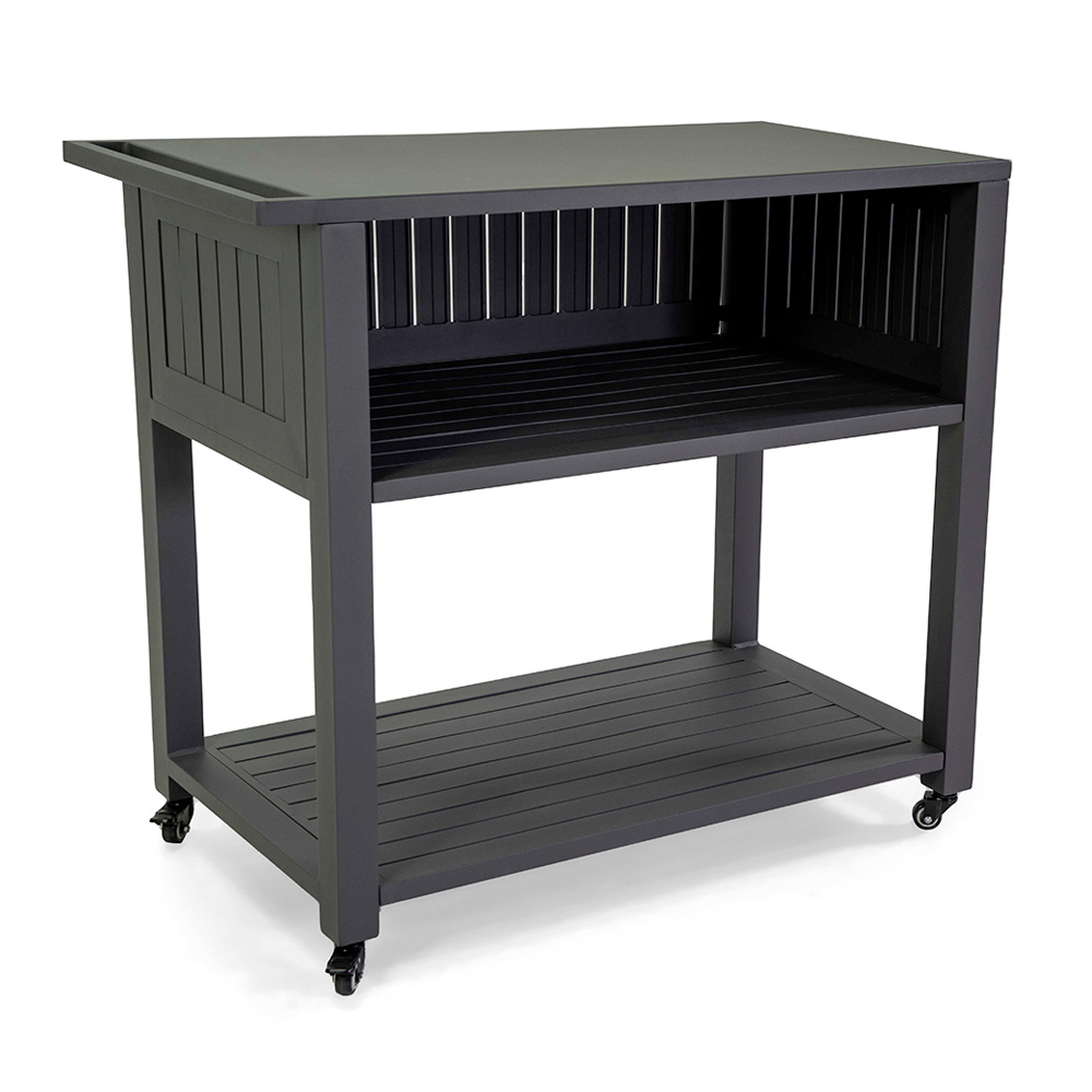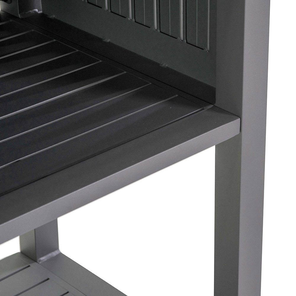Med exempel på arbets- och förvaringsytor inkluderar designen en praktisk topphylla för förberedelse och servering, en mittenhylla för att hålla redskap och tillbehör nära till hands och en stor bottenhylla perfekt för förvaring av ytterligare tillbehör eller stora trädgårdsredskap.
