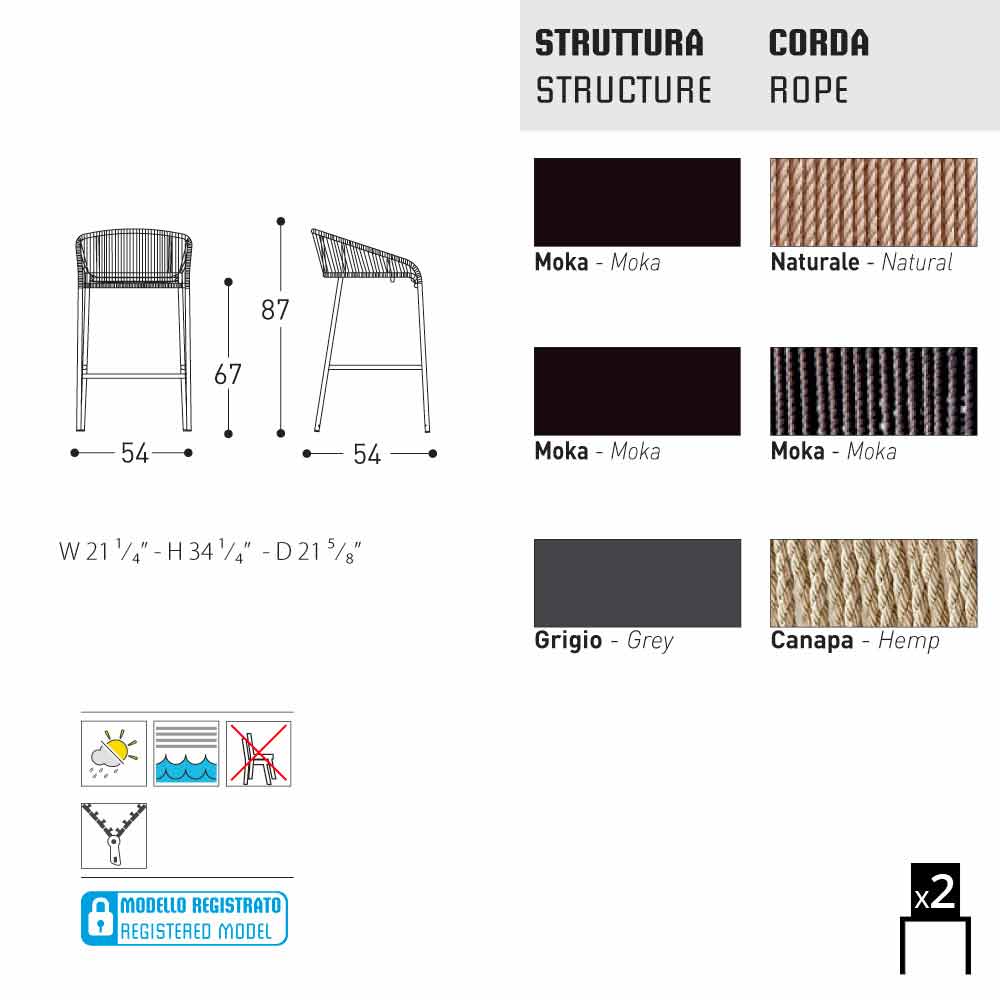 Set bestående av 2 handvävda syntetiska fiber avföring med ram i lackerad aluminium. Pallen Cricket av Varaschin kan användas utomhus, men också att ge inomhusmiljöer.