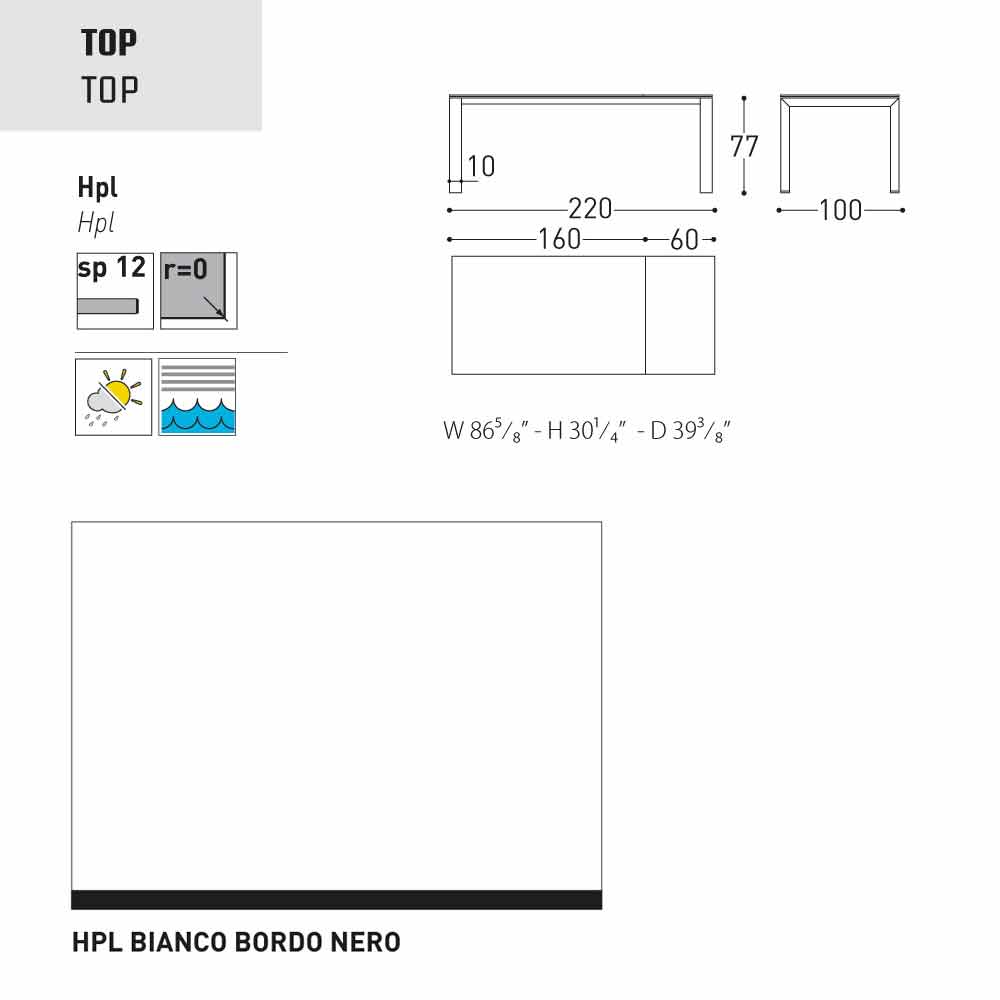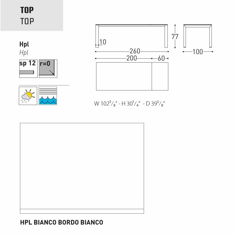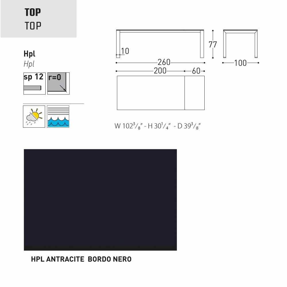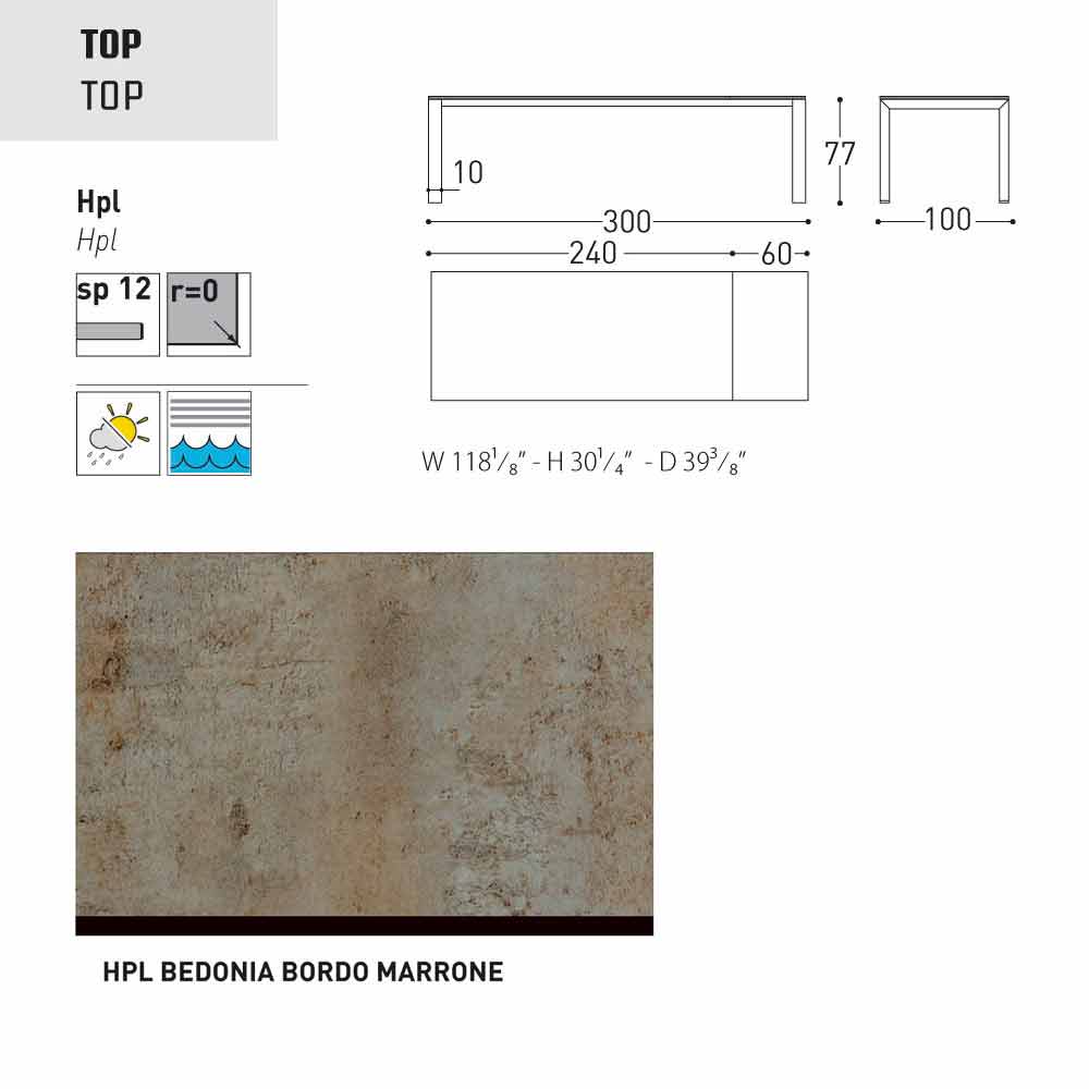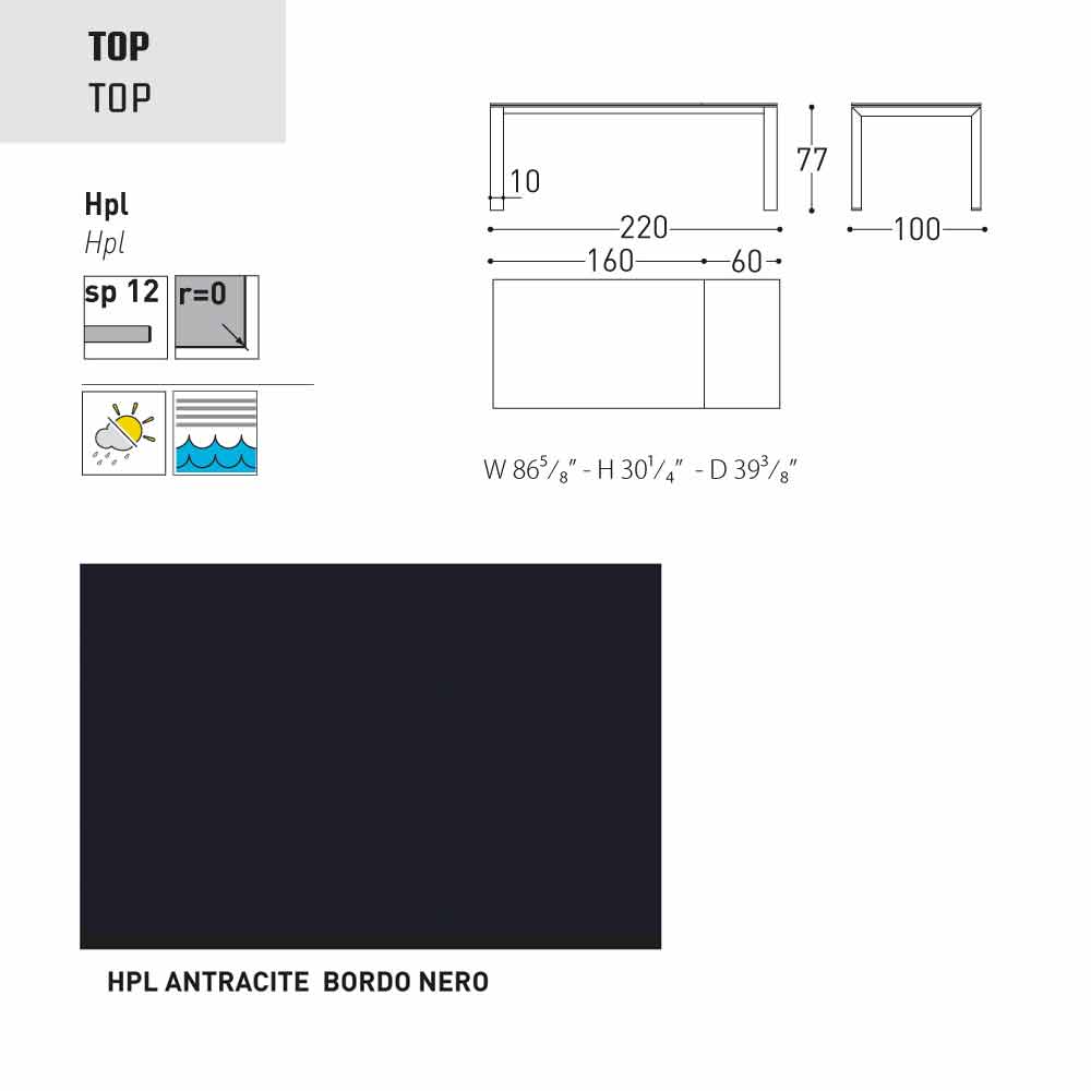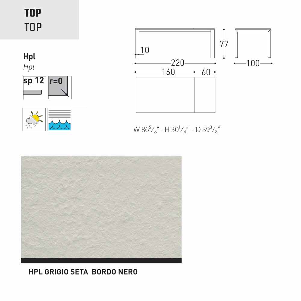 Dolmen tabell presenteras en målad aluminiumstruktur och HPL, tjocklek 12 mm. Det finns ett bord med en mycket effektiv förlängning systemet i termer av storlek, men också för att underlätta rörligheten. Med sin mångsidiga design kan den användas utomhus, såsom trädgård, terrass, pool och inomhusmiljöer.