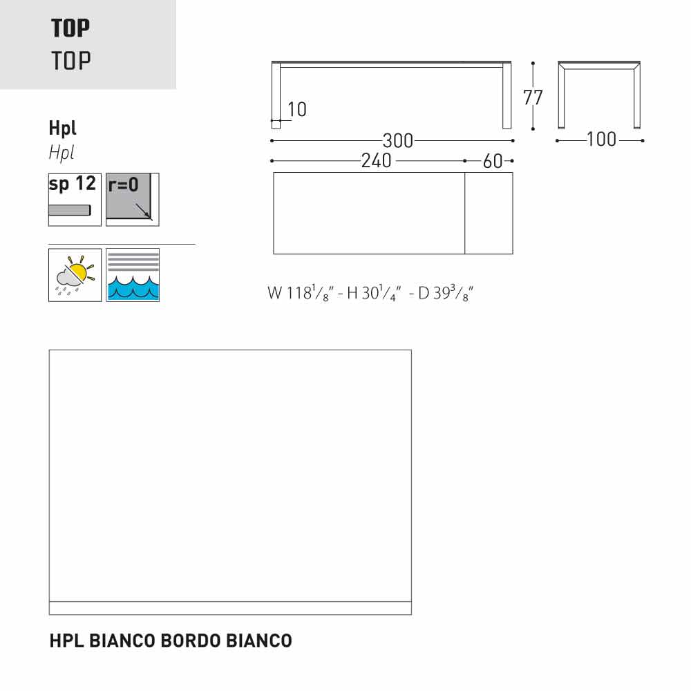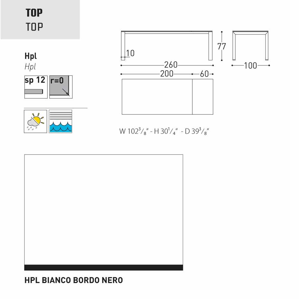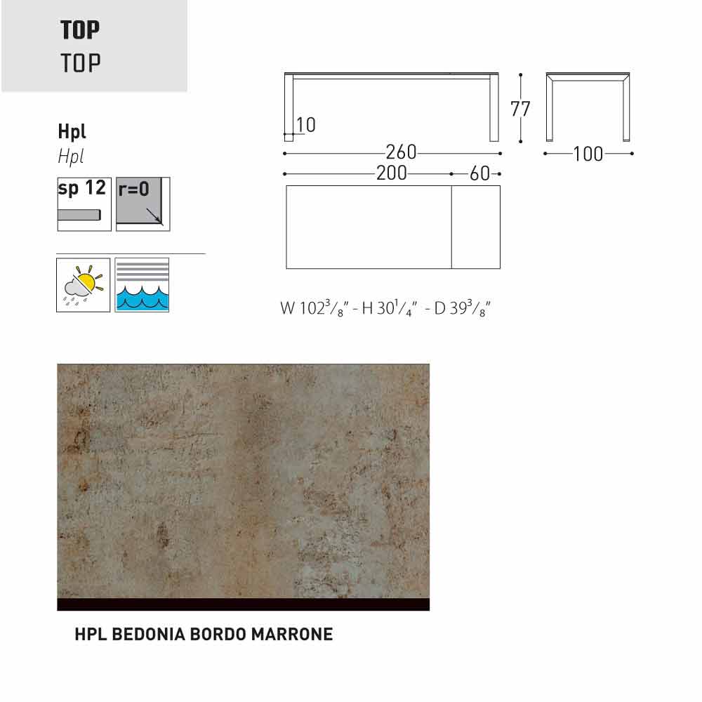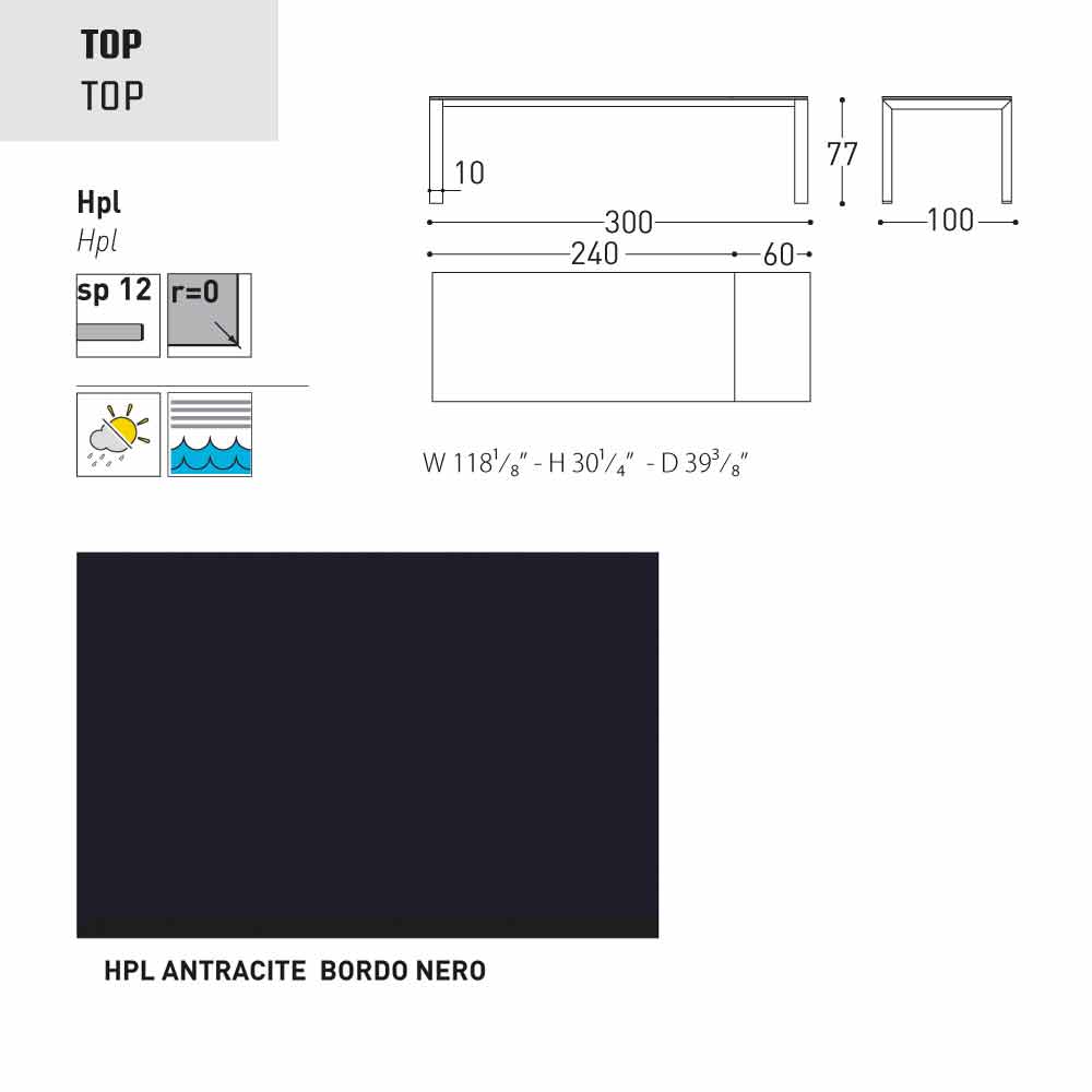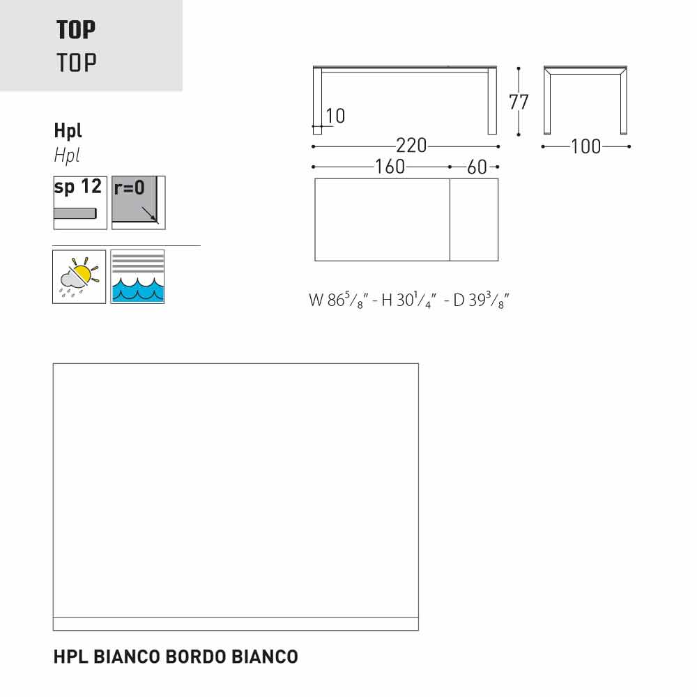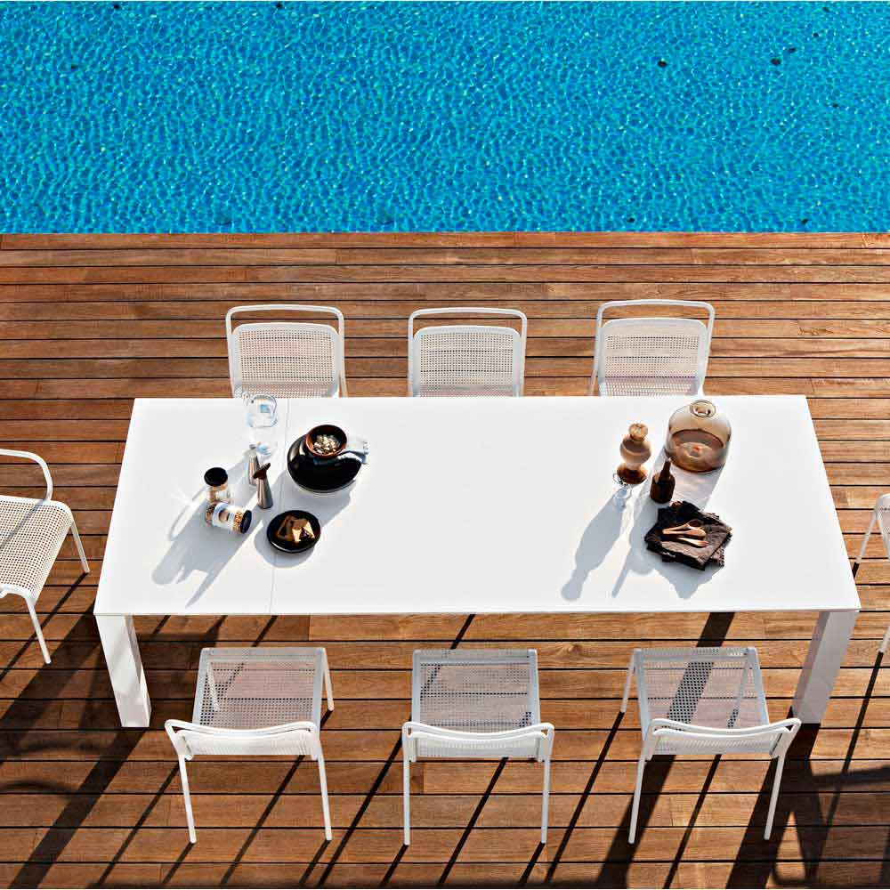 Dolmen tabell presenteras en målad aluminiumstruktur och HPL, tjocklek 12 mm. Det finns ett bord med en mycket effektiv förlängning systemet i termer av storlek, men också för att underlätta rörligheten. Med sin mångsidiga design kan den användas utomhus, såsom trädgård, terrass, pool och inomhusmiljöer.