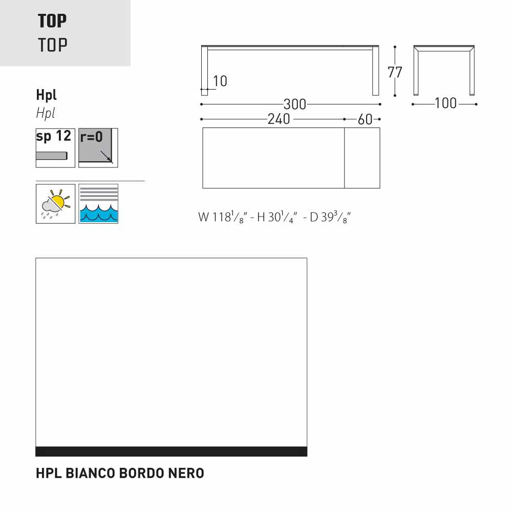 - 100 x 240/300 x H 77 cm; En förlängning av 60 cm