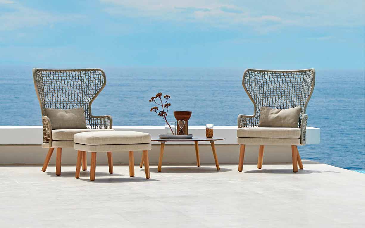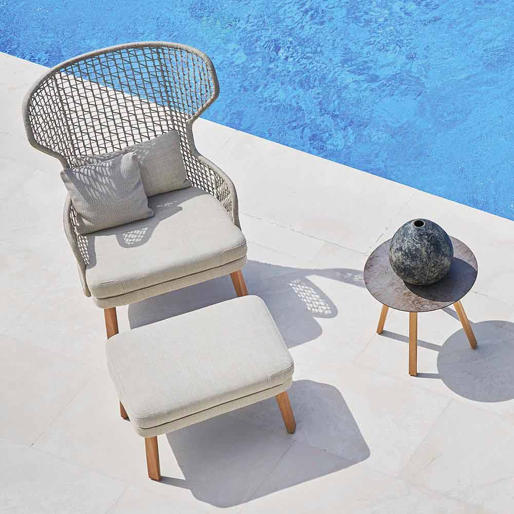 Varaschin Emma utomhusfotstöd i vadderat tyg och iroko trä