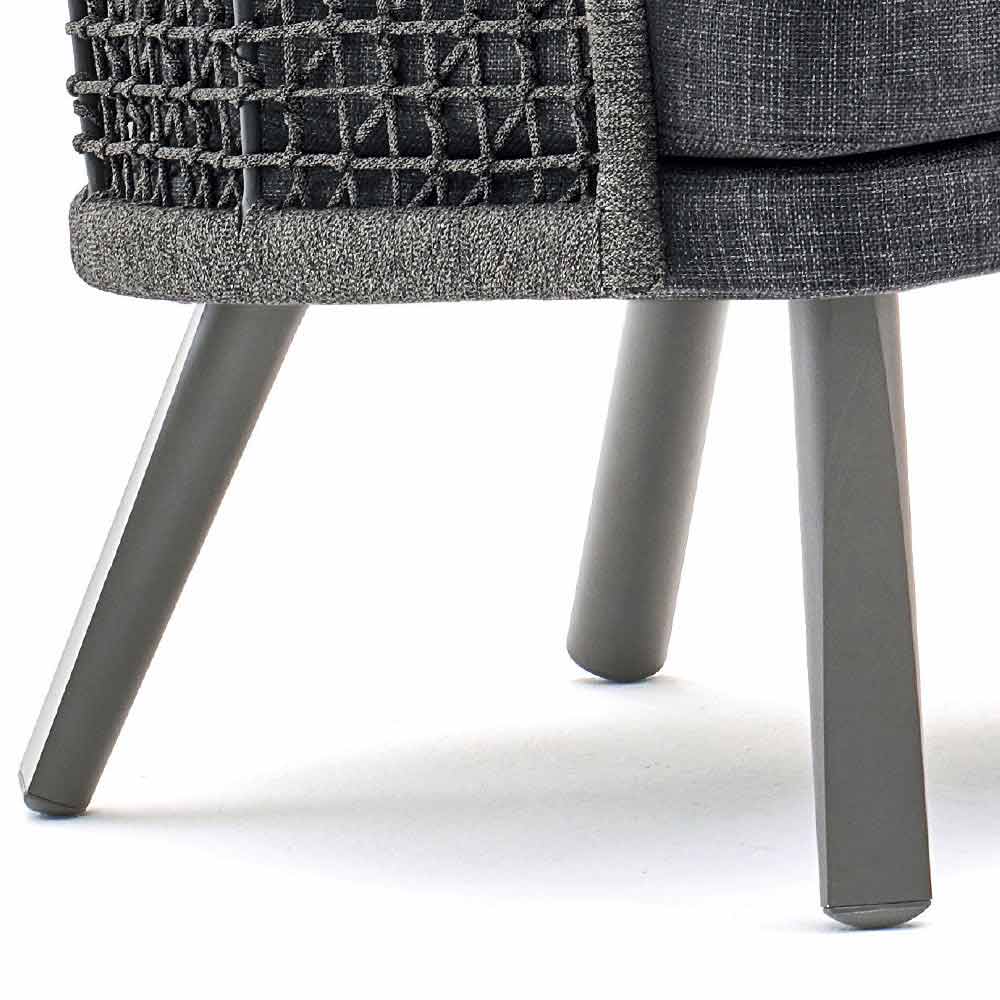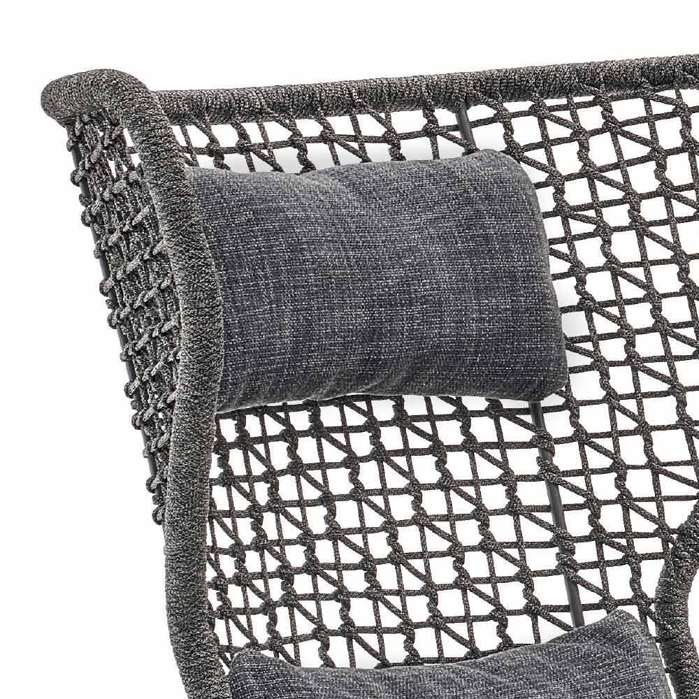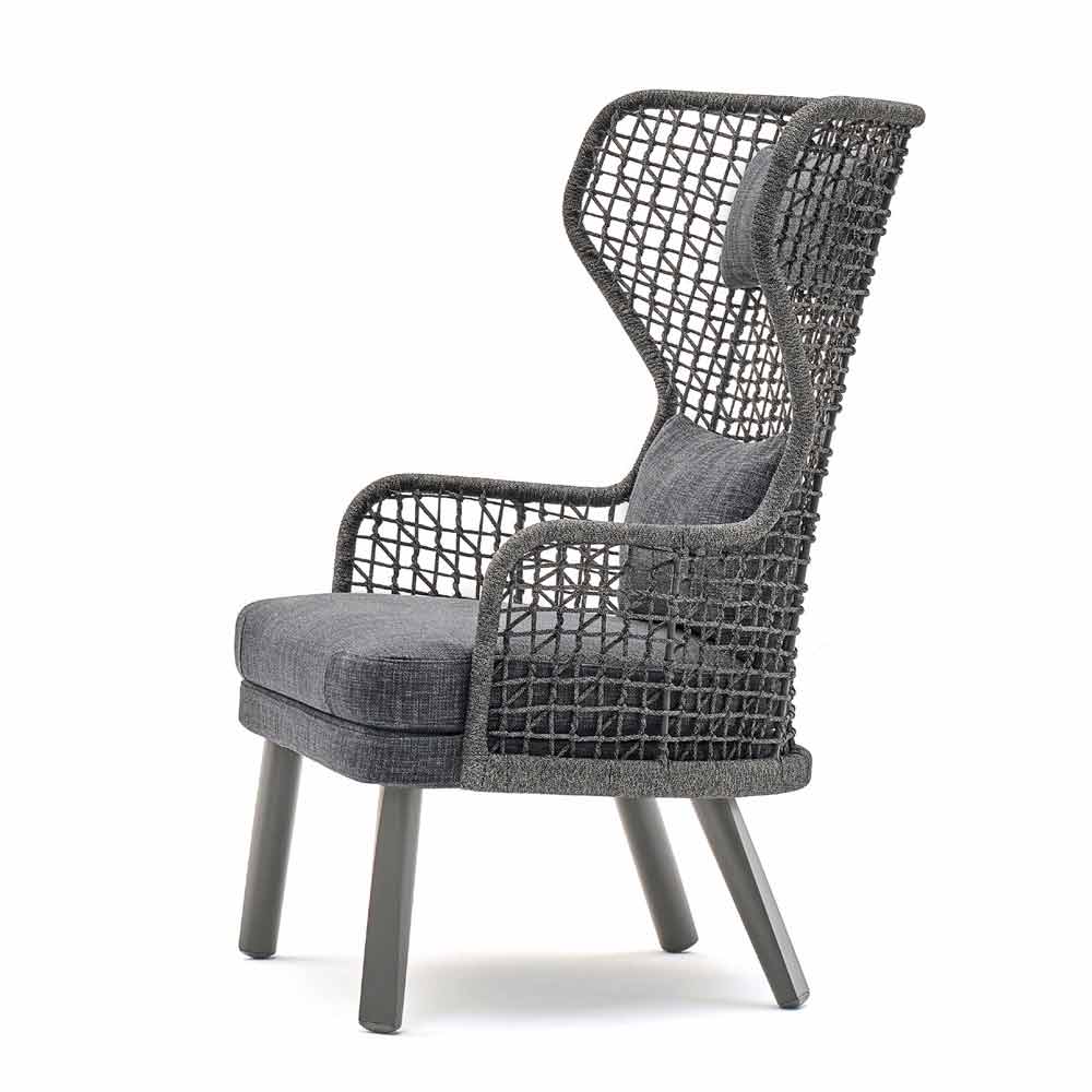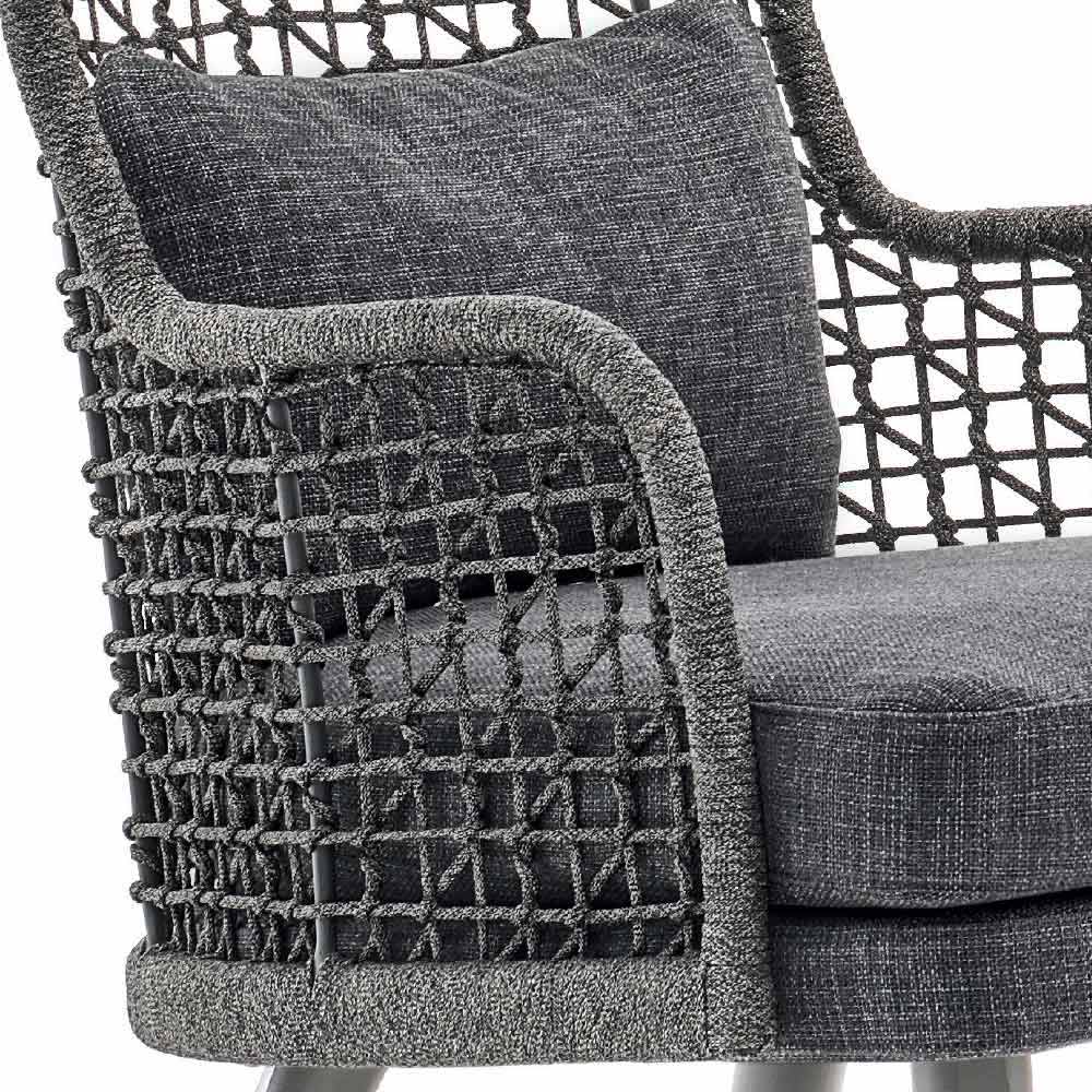 Emma är en magnifik trädgårdsstol med en struktur tillverkad av handvävda syntetfibrer med en mörkgrå pulverlackerad aluminiumram .
