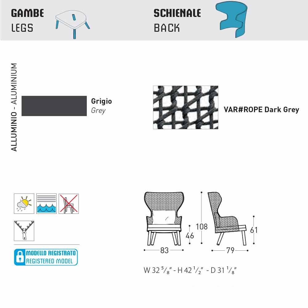 Det kommer också med ben i grått målat aluminium och ett säte vadderat med Dryfeel gummi täckt i tyg.