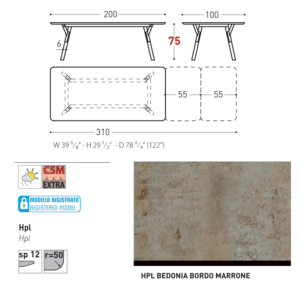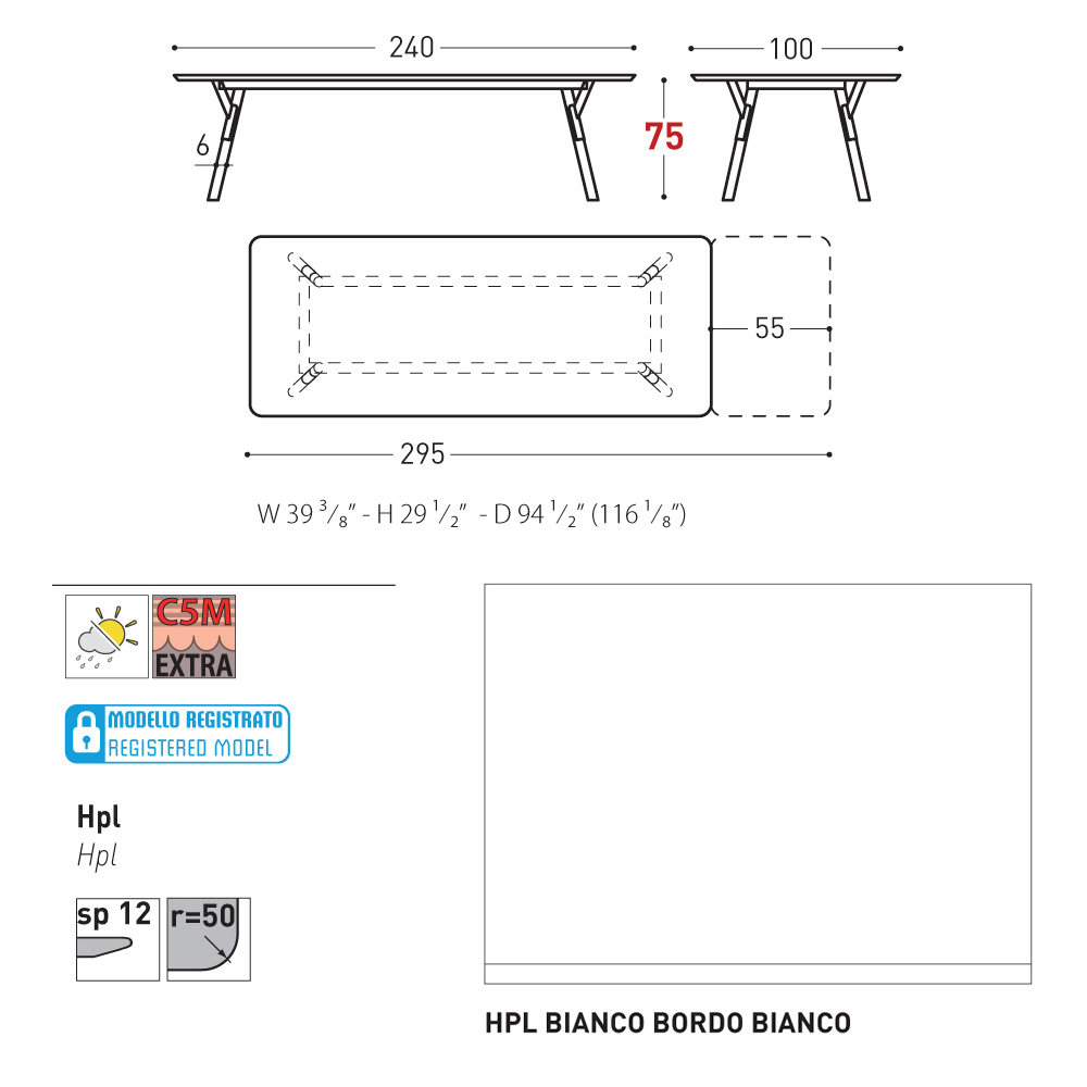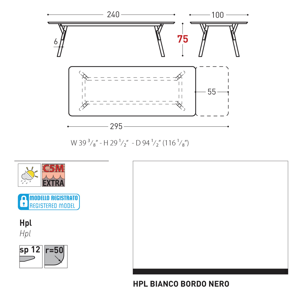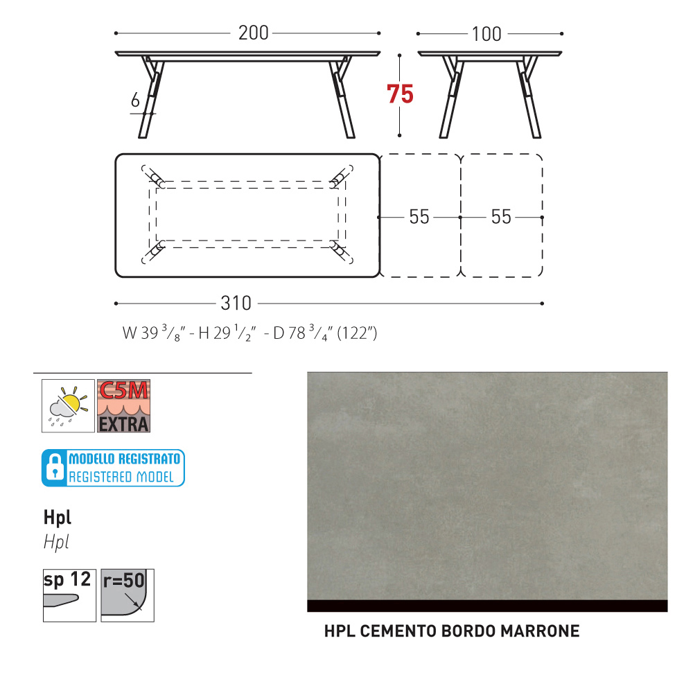 Link är ett modernt designbord med struktur (fäste + ben) i målat rostfritt stål. Toppen finns i HPL (tjocklek 12 mm) eller i teak (tjocklek 30 mm). Tack vare sin mångsidiga design kan den användas både som ett utdragbart utomhusbord och för att möblera inomhusmiljöer. Olika ytbehandlingar finns tillgängliga för att anpassa strukturen, benen och bordsskivan.
