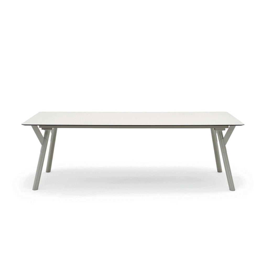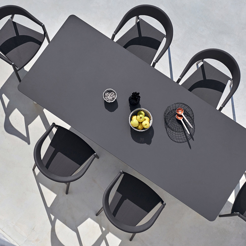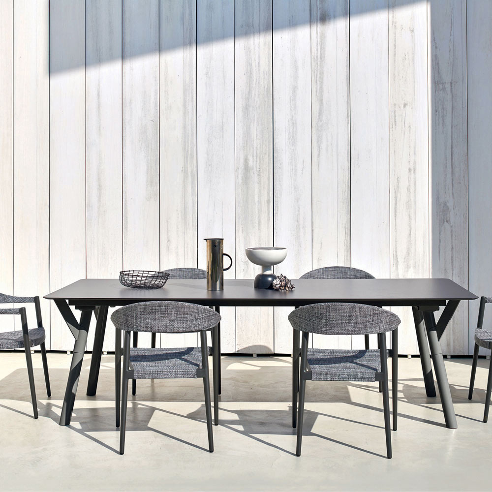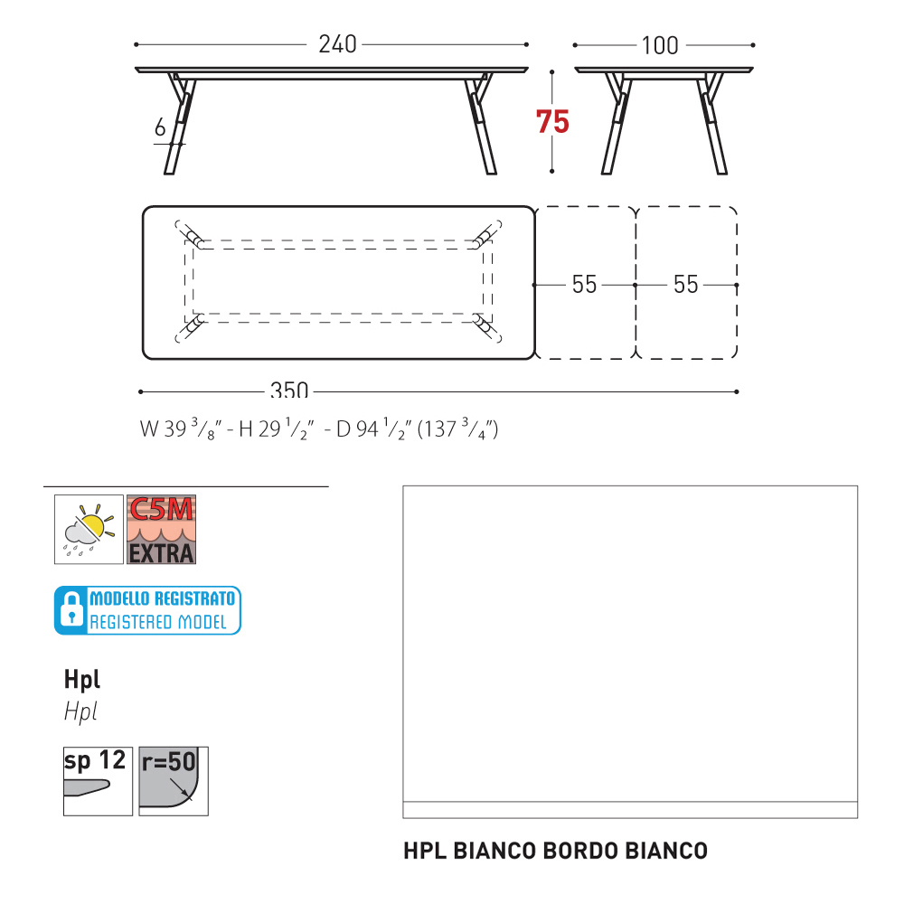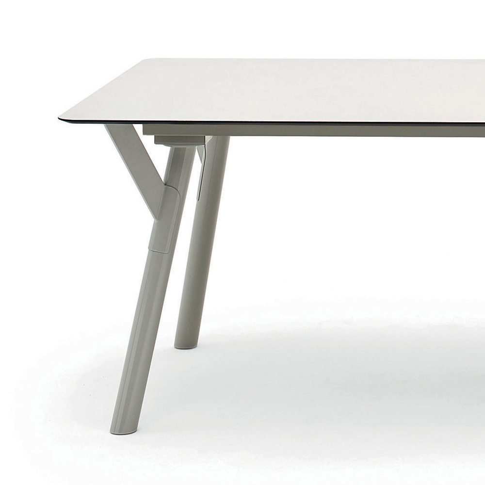 Link är ett modernt designbord med struktur (fäste + ben) i målat rostfritt stål. Toppen finns i HPL (tjocklek 12 mm) eller i teak (tjocklek 30 mm). Tack vare sin mångsidiga design kan den användas både som ett utdragbart utomhusbord och för att möblera inomhusmiljöer. Olika ytbehandlingar finns tillgängliga för att anpassa strukturen, benen och bordsskivan.