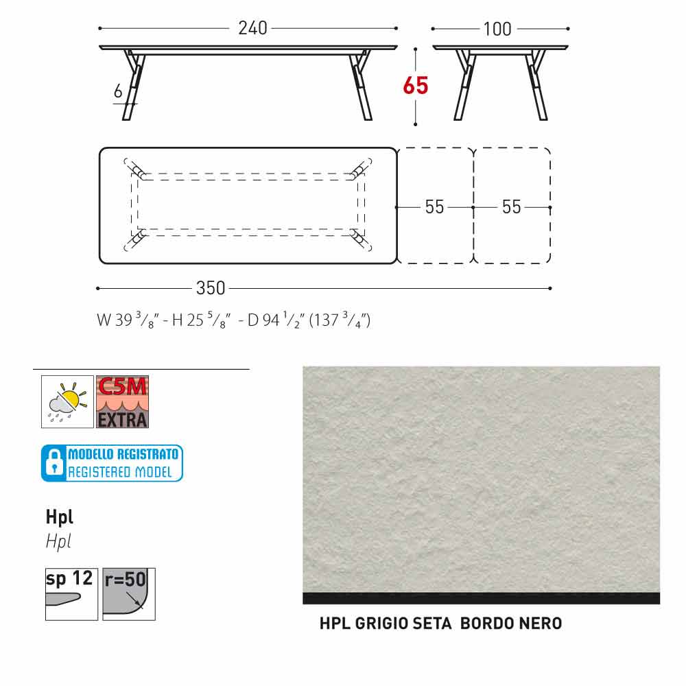HPL Funktioner: högtryckslaminat. De består av flera lager av papper (70%) som impregnerats med värmehärdande hartser (30%) och kompakterade genom den kombinerade verkan av värme (ca 150 grader) och högt tryck (större än 7 MPa) under ca 45-50 minuter. Resultatet är en stabil, icke-reaktivt, icke-porös och hög densitet, med fysikaliska och kemiska egenskaper som hög mekanisk hållfasthet (kontrollerad termisk utflykt 80; -40 grader, på begränsad tid mindre än 30 sekunder vid extrema temperaturer), exponering för ljus och exponering för förändringar i temperatur, även i marina miljöer.