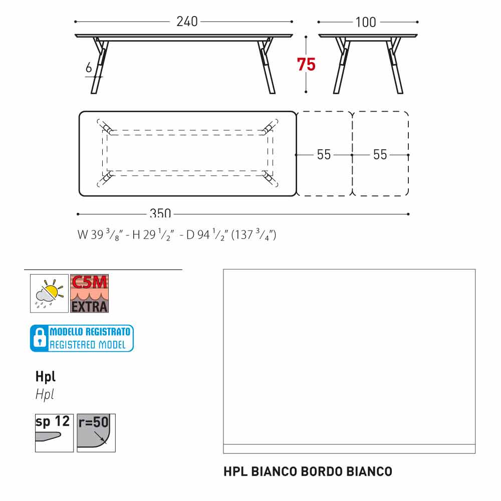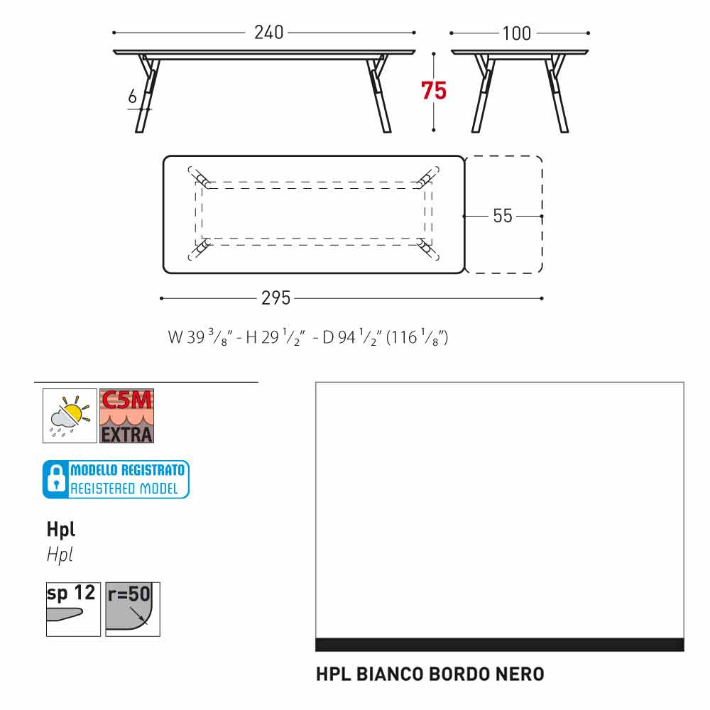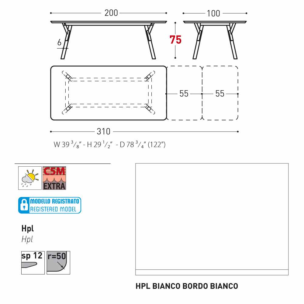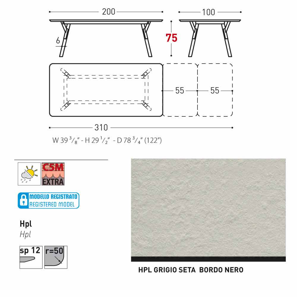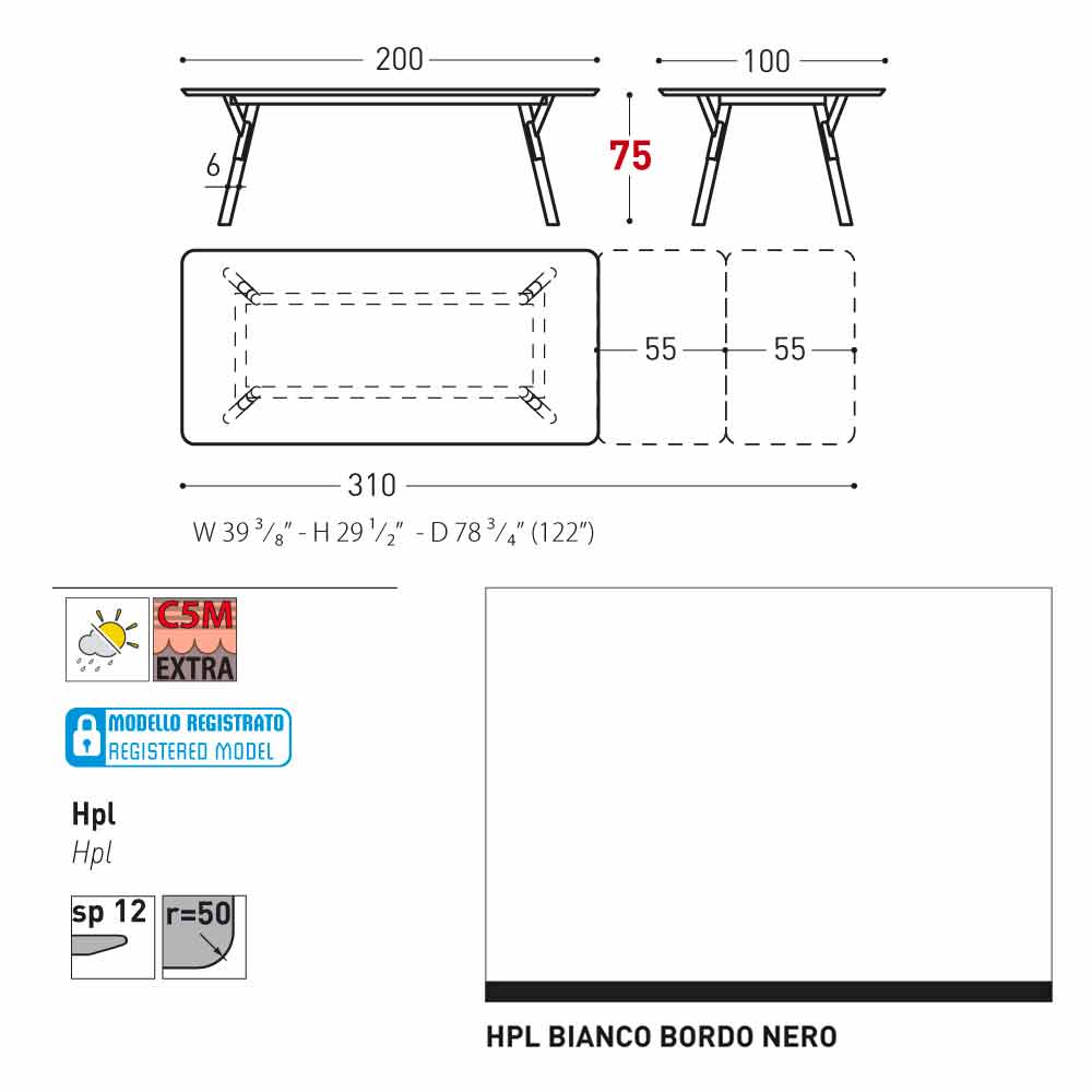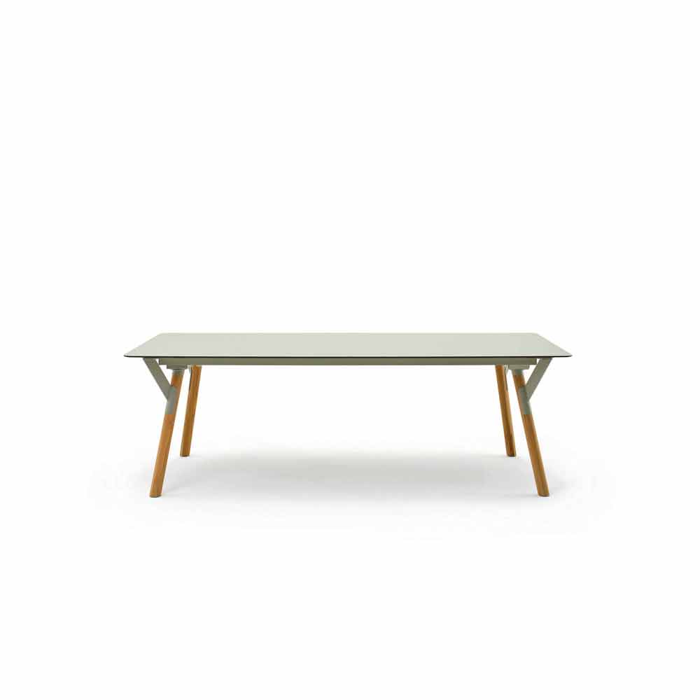 Link är ett bord med en modern design med ram i rostfritt stål och målade teak ben. Planen är tillgänglig i HPL (tjocklek 12 mm) eller teak (tjocklek 30 mm). Med sin mångsidiga design kan den användas som antingen ett bord utanför utbyggbar att lämna inomhusmiljöer. olika ytbehandlingar finns med för att anpassa strukturen och bordsskivan.