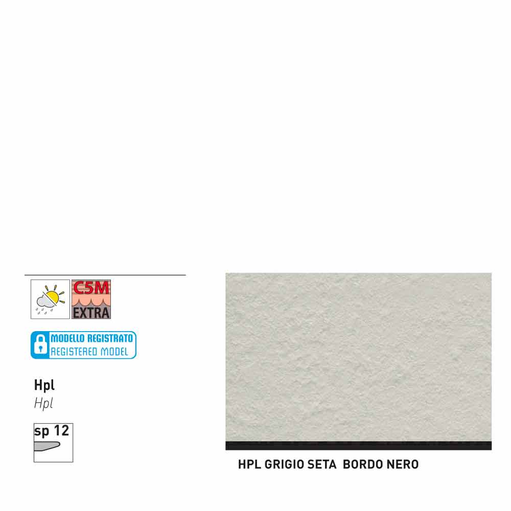 HPL Funktioner: högtryckslaminat. De består av flera lager av papper (70%) som impregnerats med värmehärdande hartser (30%) och kompakterade genom den kombinerade verkan av värme (ca 150 grader) och högt tryck (större än 7 MPa) under ca 45-50 minuter. Resultatet är en stabil, icke-reaktivt, icke-porös och hög densitet, med fysikaliska och kemiska egenskaper som hög mekanisk hållfasthet (kontrollerad termisk utflykt 80; -40 grader, på begränsad tid mindre än 30 sekunder vid extrema temperaturer), exponering för ljus och exponering för förändringar i temperatur, även i marina miljöer.