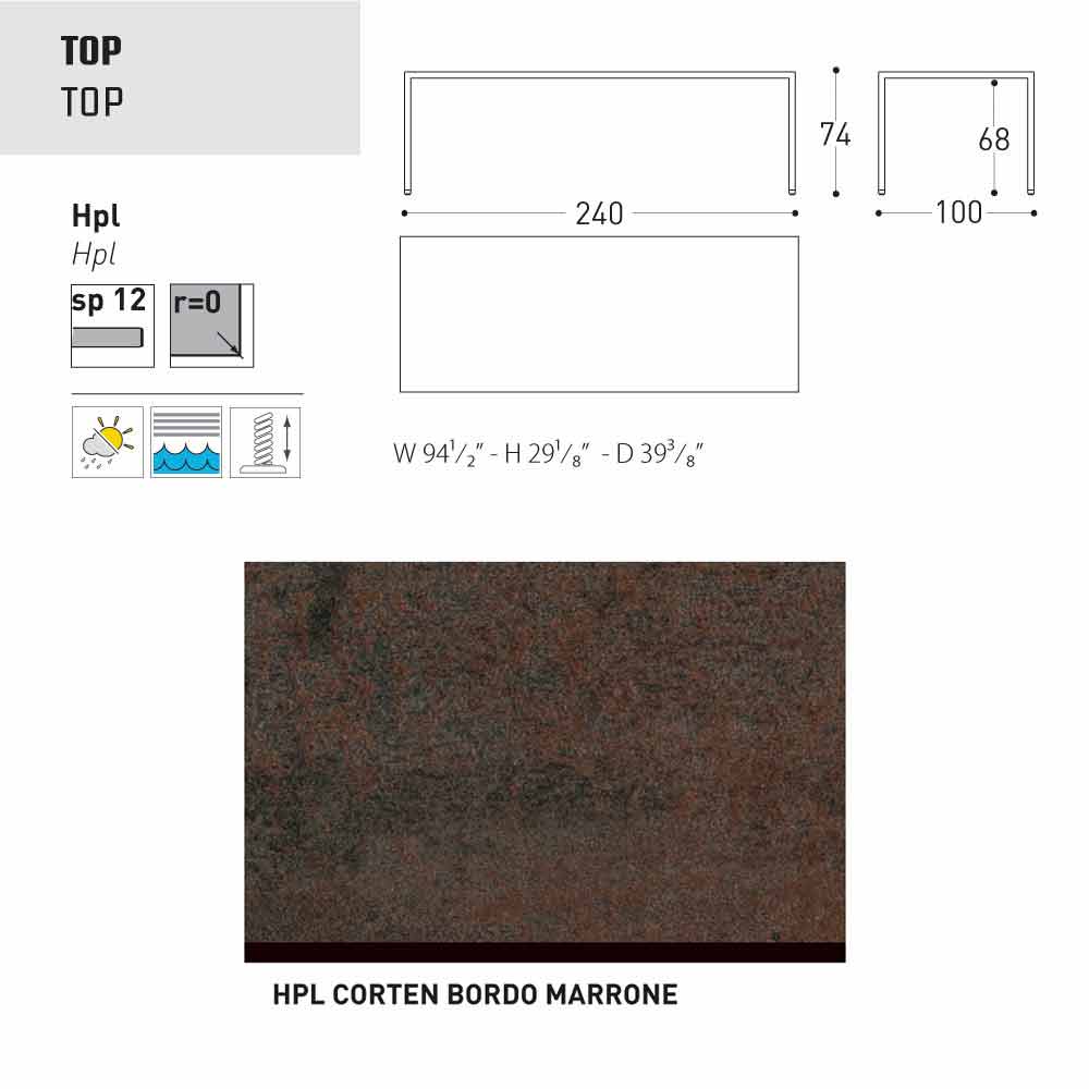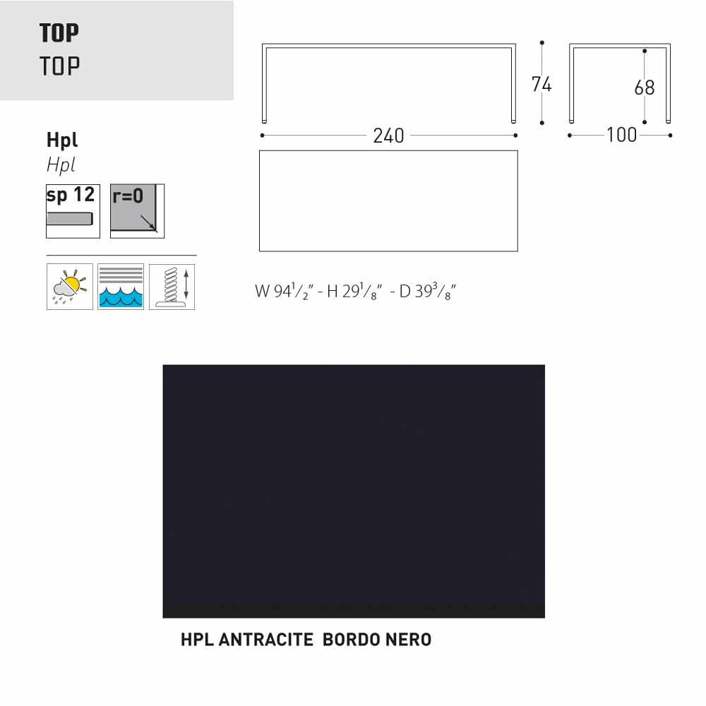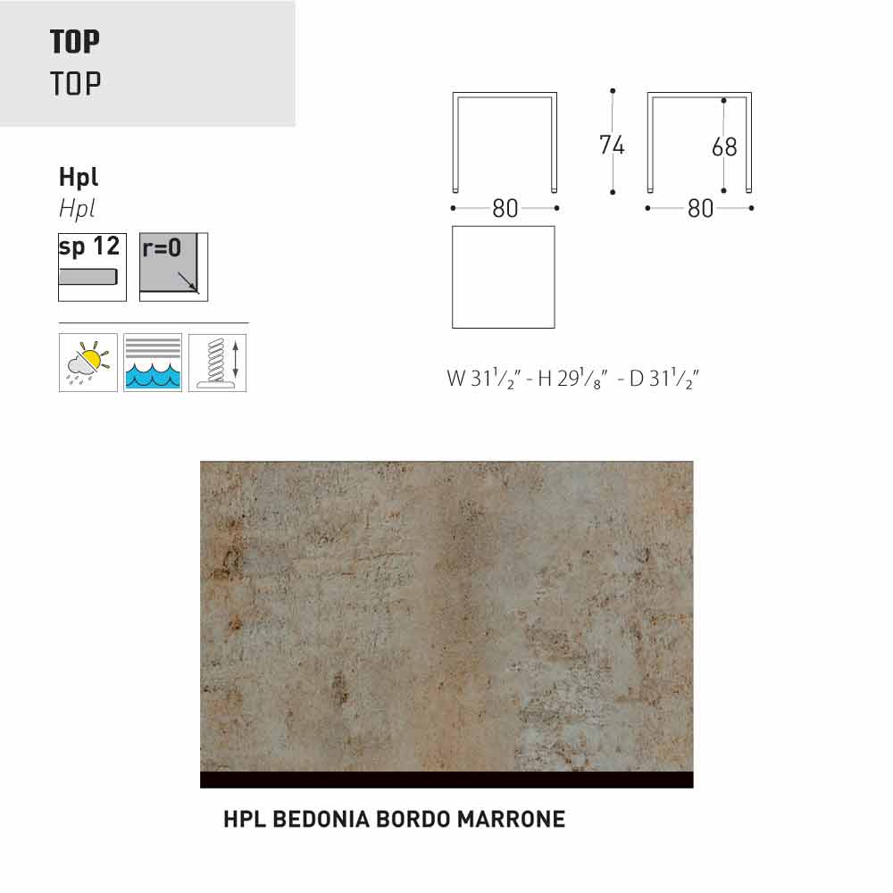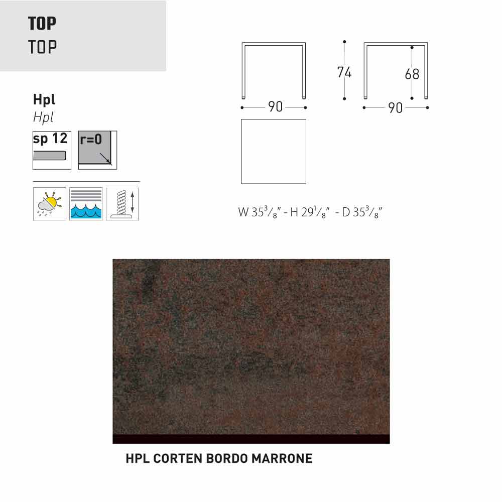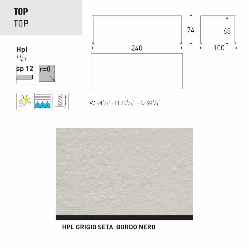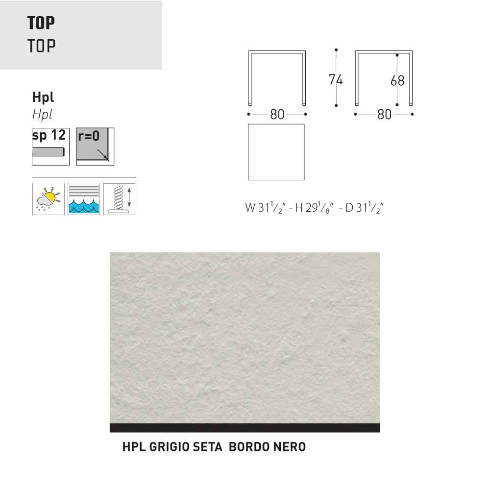 Samling med struktur i pulverlackerad aluminium, tjocklek HPL topp 12 mm och nivåfötter med 0-5 mm justering. Victor tabell kan användas både som utomhus bord som i vardagsrummet och har föreslagits i olika storlekar och utföranden.