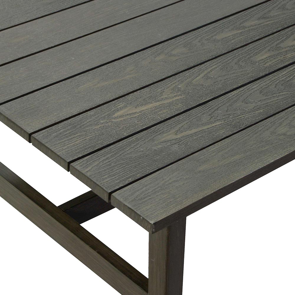 Det låga bordet kontrasterar vackert med rottingramen, vilket skapar ett modernt utseende som enkelt kan integreras med alla typer av utemöbler.
