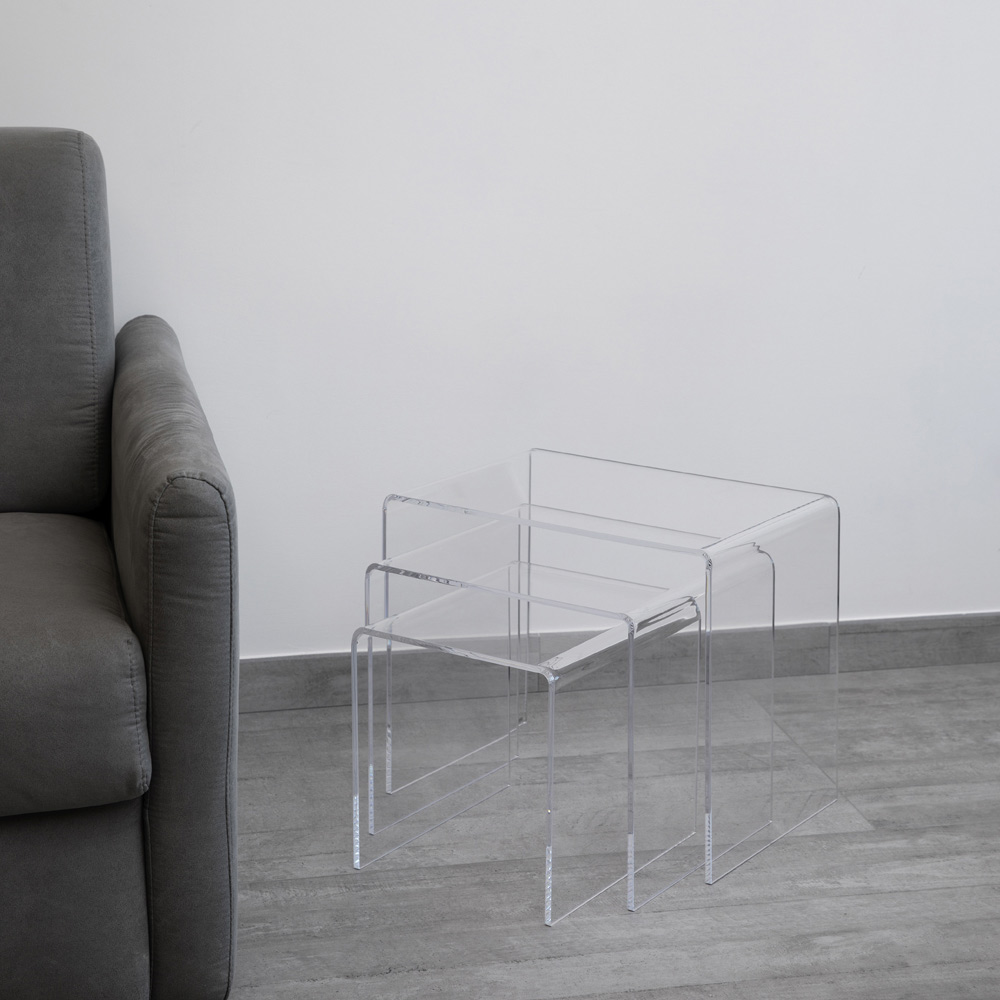 Triptyk soffbord i transparent akrylkristall, tillverkade i Italien.
