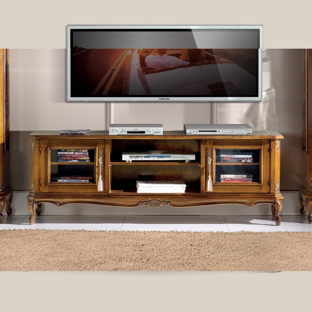 Denna TV-bänk, designad för att inreda ditt vardagsrum med en touch av klassisk stil, är tillverkad av fin Bassano-valnöt. Denna praktiska möbel har två dörrar och två fack. Unik och raffinerad, den är helt tillverkad i Italien och handgjord av skickliga hantverkare , avslutad med skicklighet och elegans. Tillverkningsprocessen använder högkvalitativa material och utförs för hand med den största omsorg och professionalism som kännetecknar Made in Italy -produkter.