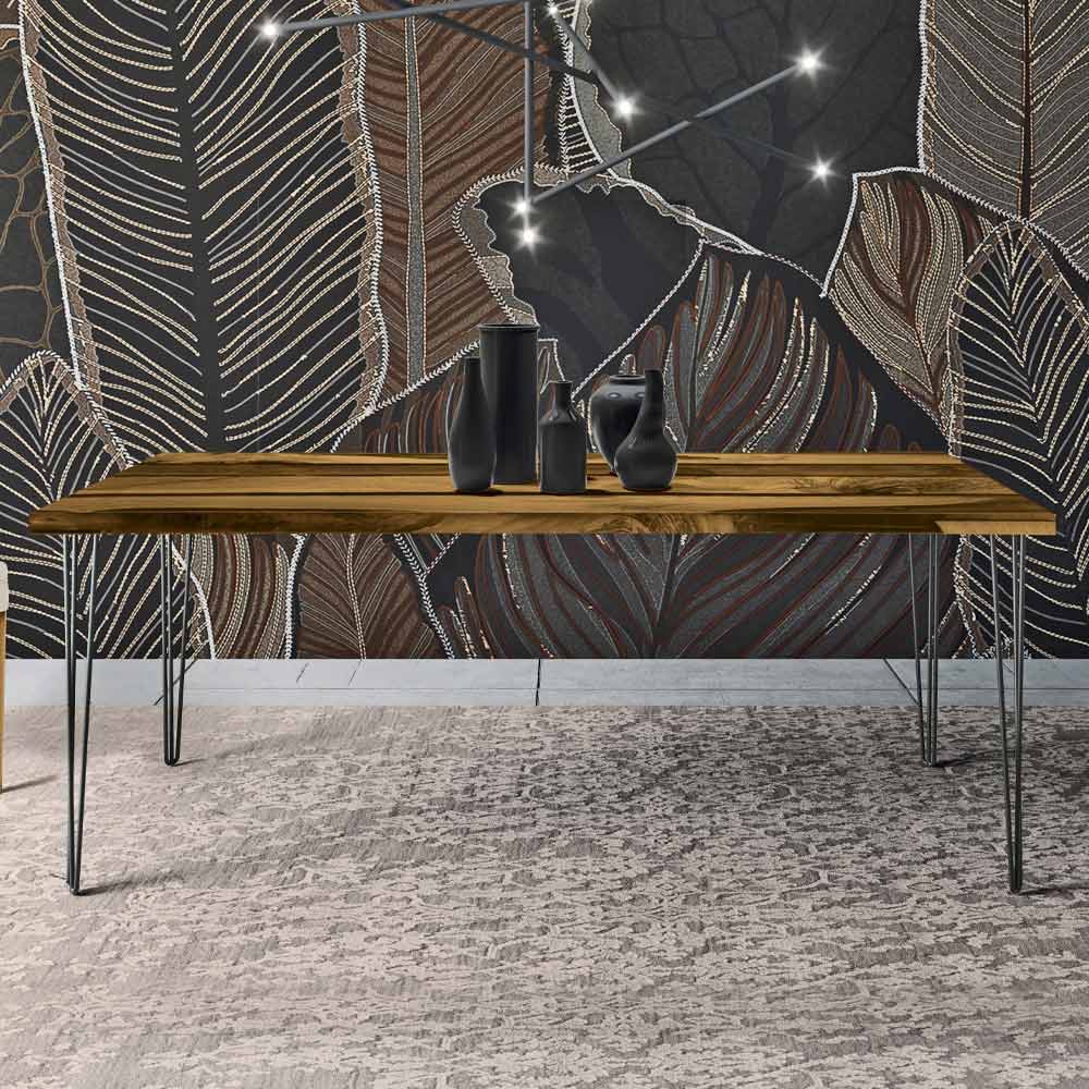Fast rektangulärt designbord med trä- och hartsskiva Made in Italy
