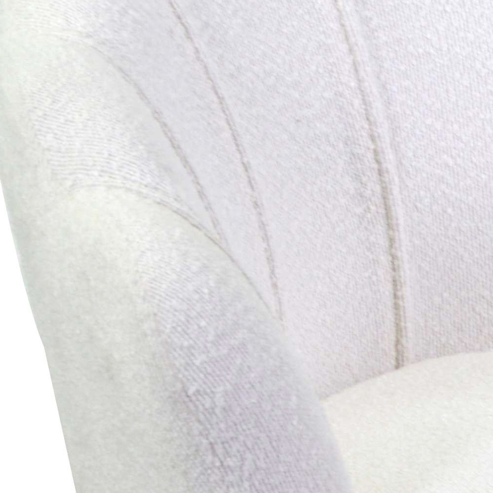Med sin skalformade design kombinerar denna fåtölj vintageelegans och modern stil. Tyget, mjukt och lyxigt vid beröring, ger en känsla av förfining och omslutande komfort, vilket gör den perfekt för att berika ett vardagsrum, ett sovrum eller ett arbetsrum med ett inslag av tidlös glamour .