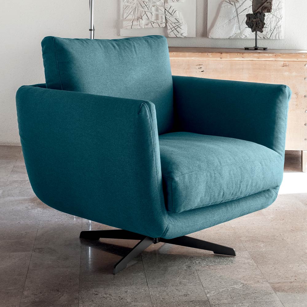 antracitfärgad lackerad metall. Fåtöljen representerar en harmonisk blandning av komfort och modern stil. Den eleganta designen med mjuka och rundade linjer framkallar en känsla av mysighet, samtidigt som den robusta strukturen säkerställer hållbarhet över tid. Den högkvalitativa tygklädseln, tillsammans med de stora och bekväma kuddarna, utlovar en avkopplande sittupplevelse. De tunna och geometriska fötterna ger en sofistikerad touch, vilket gör fåtöljen till en fascinerande design. Denna fåtölj är idealisk för dig som letar efter en inredningslösning som kombinerar modern estetik och oklanderlig komfort.