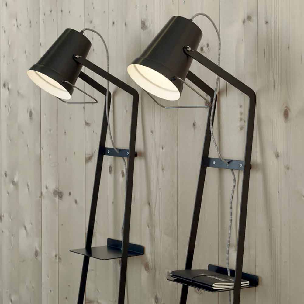 Denna originella och unika golvlampa fungerar som en butler med sin väggsilhouette som gör att du kan rikta ljuset i rummet direkt eller indirekt och dess praktiska hyllor för en funktionell design i vardagsrummet. Så här passar det lysande totemet i olika sammanhang för att ge stil och effektivitet.