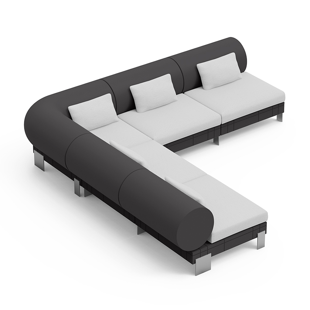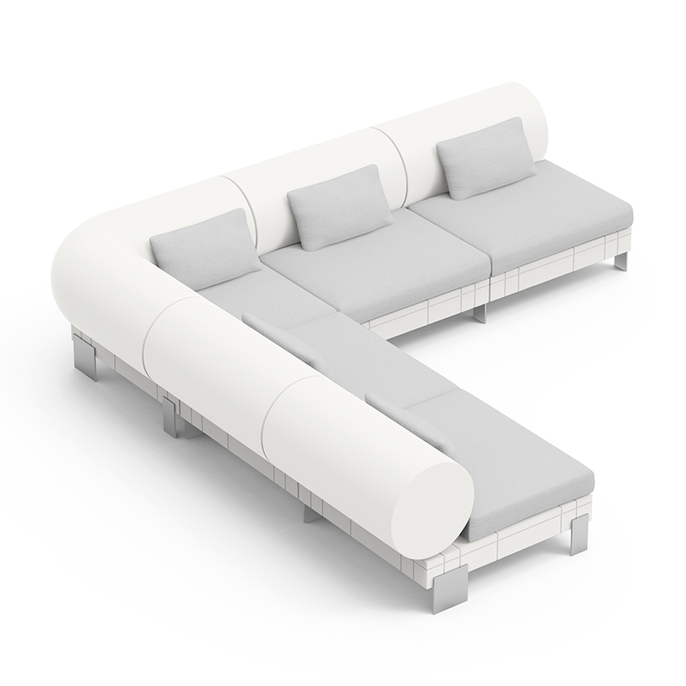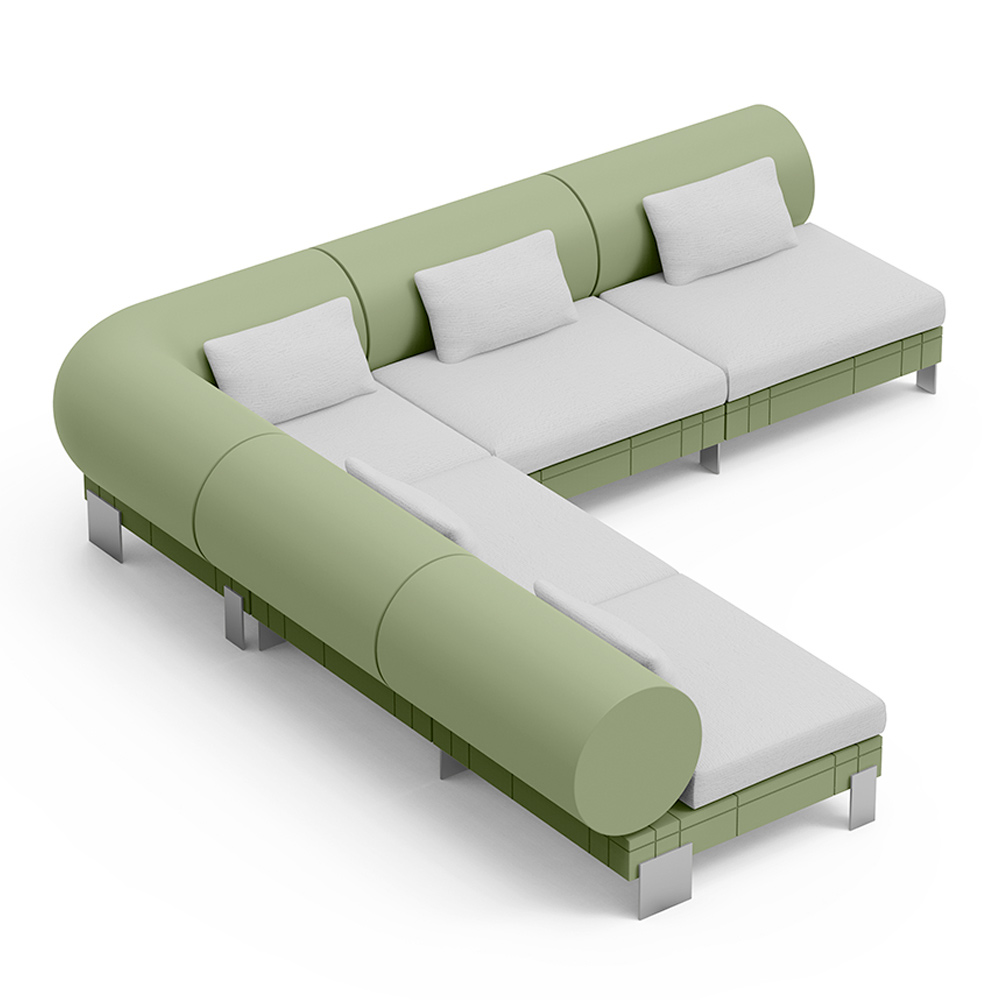 Denna moderna soffa kombinerar komfort och modern design i en möbel som lockar uppmärksamhet. Soffan kännetecknas av rena linjer och en innovativ form med sidocylindrar, och erbjuder en touch av unik och funktionell stil . Dess färgpalett introducerar ett element av ljushet och fräschör i varje vardagsrum.