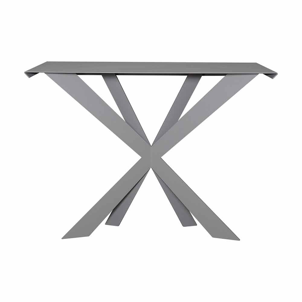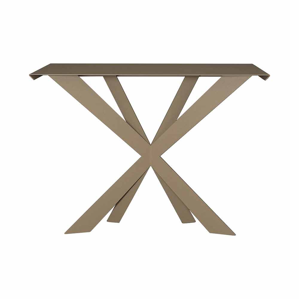 Zecchina är ett stabilt vardagsrum eller entrékonsol som kännetecknas av vanliga och asymmetriska ben som korsar varandra och bildar ett "X". Handgjorda i Italien i järn.