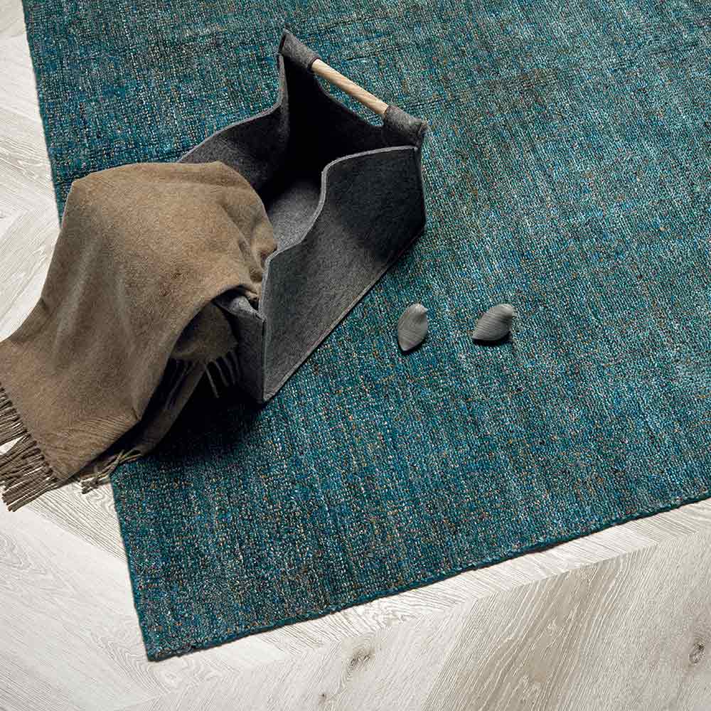 Modern vardagsrumsmatta tillverkad på en manuell vävstol i viskos, ull och bomull.