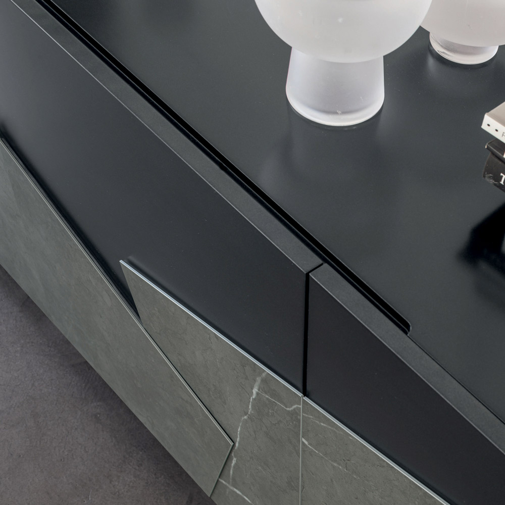 3-dörrars MDF-skänk med matta keramiska insatser tillverkade i Italien.