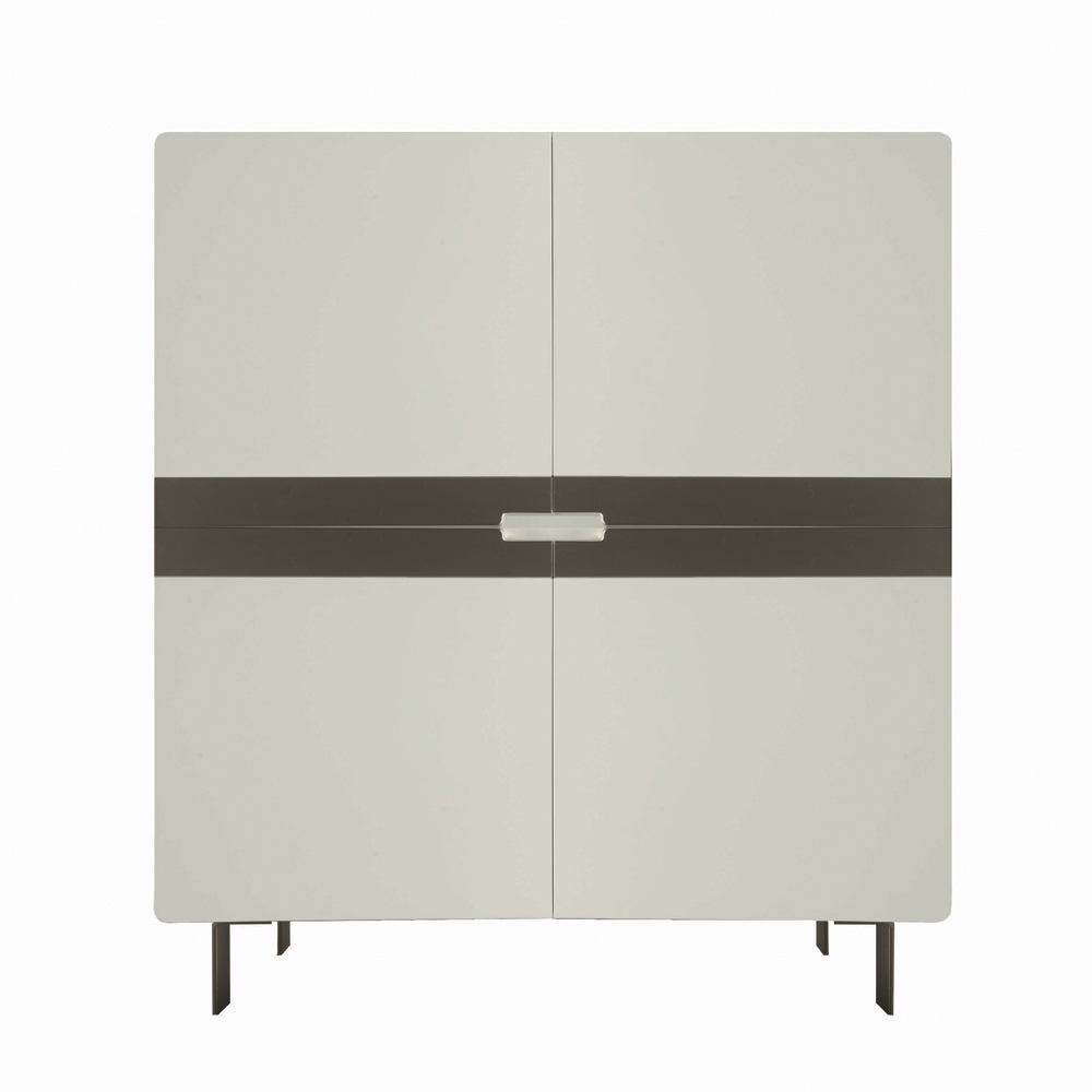 Vardagsrumsskänk med modern stil helt tillverkad i Italien bestående av järnfötter i nickelfinish och skal i vit mdf komplett med handtag i massivt tulperträ med nickelfinish och invändiga hyllor i mdf. Användningen av enkla men motståndskraftiga material förändrar detta produceras i möbler med stor mångsidighet och ett attraktivt och intressant utseende. En mångsidig och originell design utformad för att utöva olika användningsområden inom olika delar av huset, komplettera möblerna på ett exklusivt sätt efter din smak och behov.