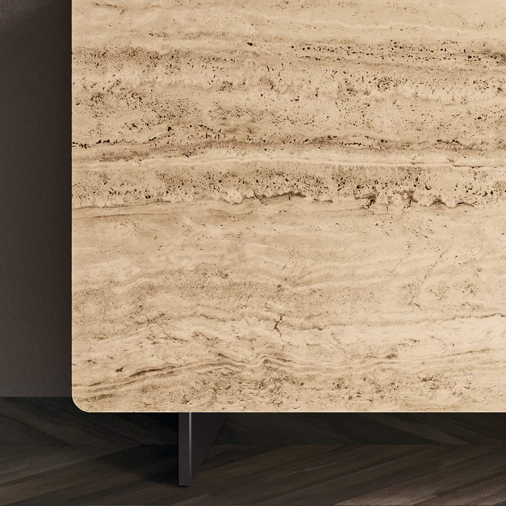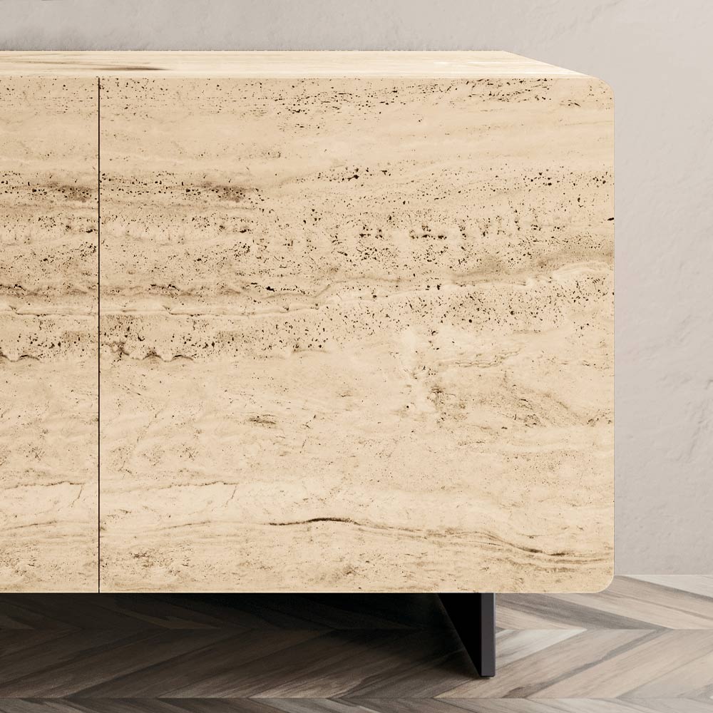 travertinmarmorfinish , helt Made in Italy. Produkten är en del av den nya linjen av moderna produkter tillverkade med respekt för naturen. Denna eleganta skänk kännetecknas av funktionaliteten och den höga kvaliteten hos italienskt hantverk.