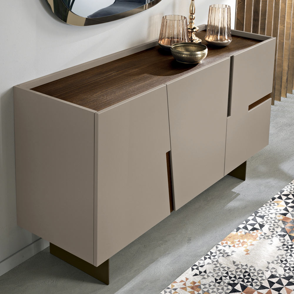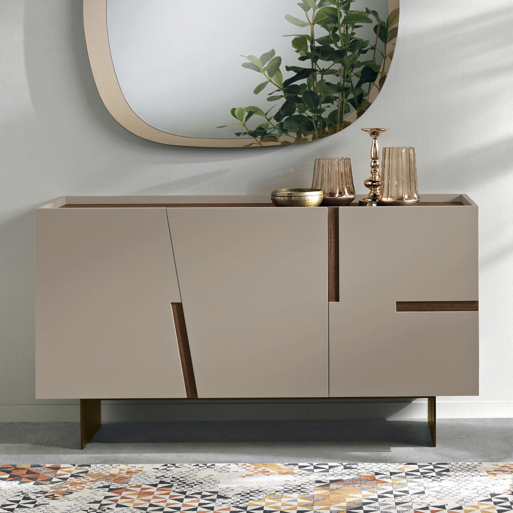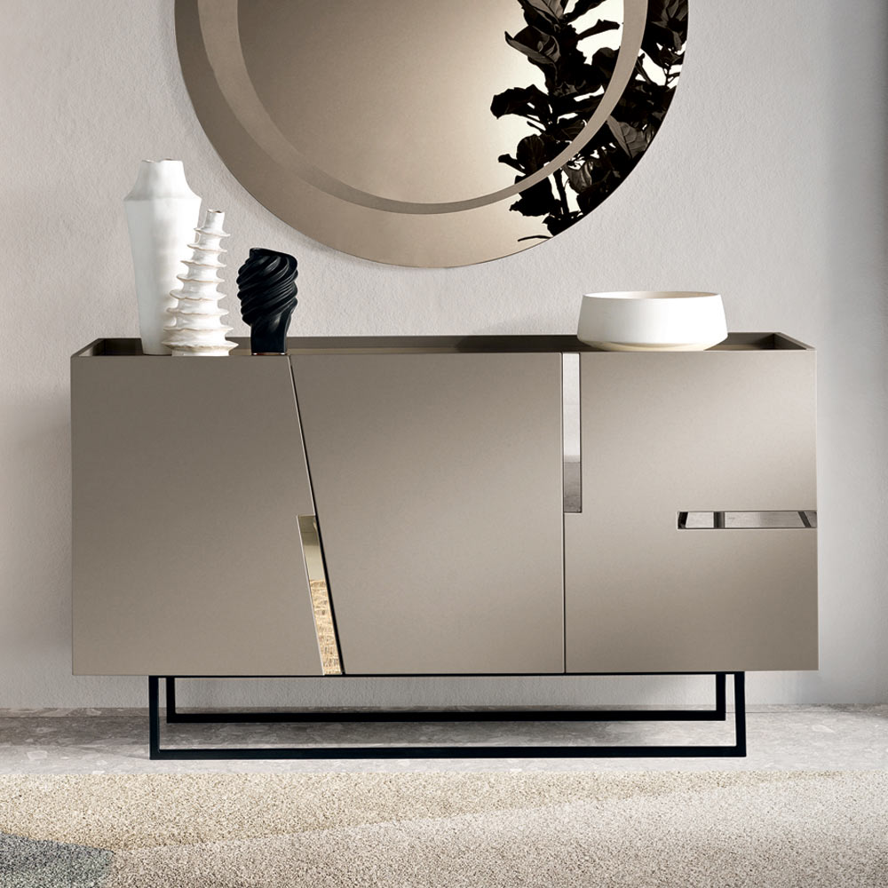 Italienskt designerskänk med lackerade dörrar och kontrasterande dekorativa inlägg