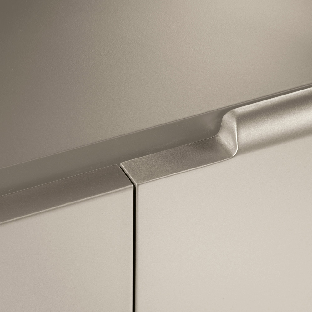 skal i nickelfinish, 3 dörrar med 1 invändig hylla vardera i nickelfinish MDF, bakpanel i plywood och
