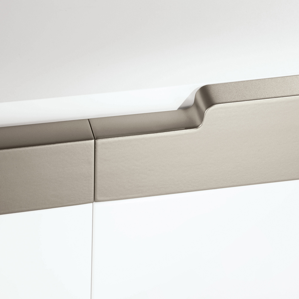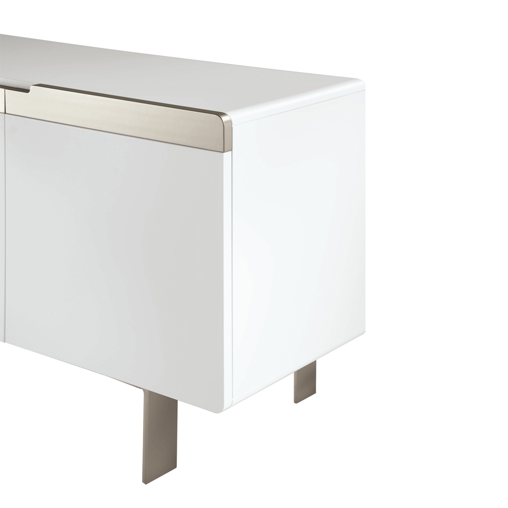 järnfötter i nickelfinish, vit MDF- kropp och dörrar med
