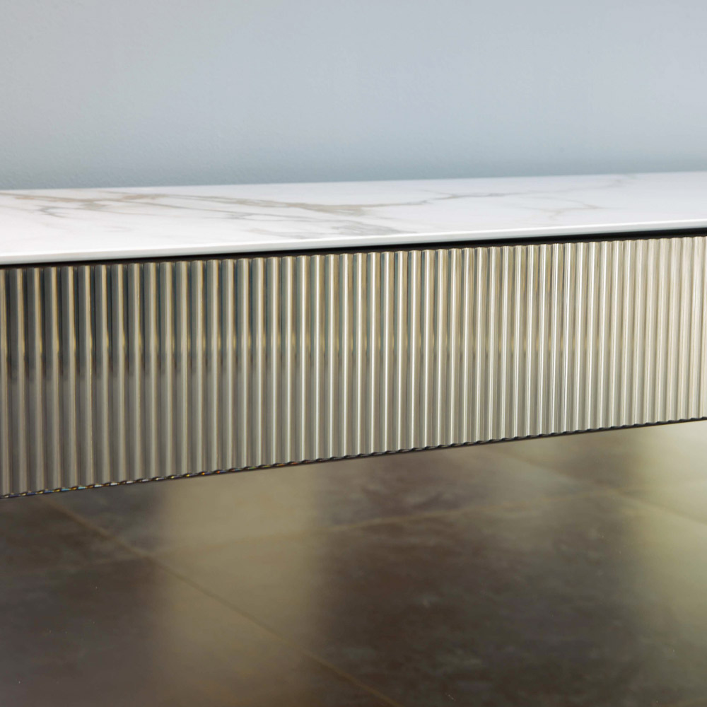 Vardagsrumsskänk av stål, melamin och keramik